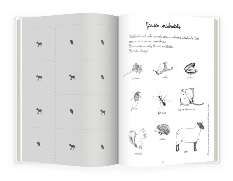 Cu ajutorul activităților propuse, vei putea îndruma copilul să descopere primele noțiuni de zoologie (clasificarea animalelor în vertebrate și nevertebrate, alcătuirea mamiferelor, păsărilor și insectelor, descrierea celor mai des-întâlnite specii de păsări și de fluturi etc.).