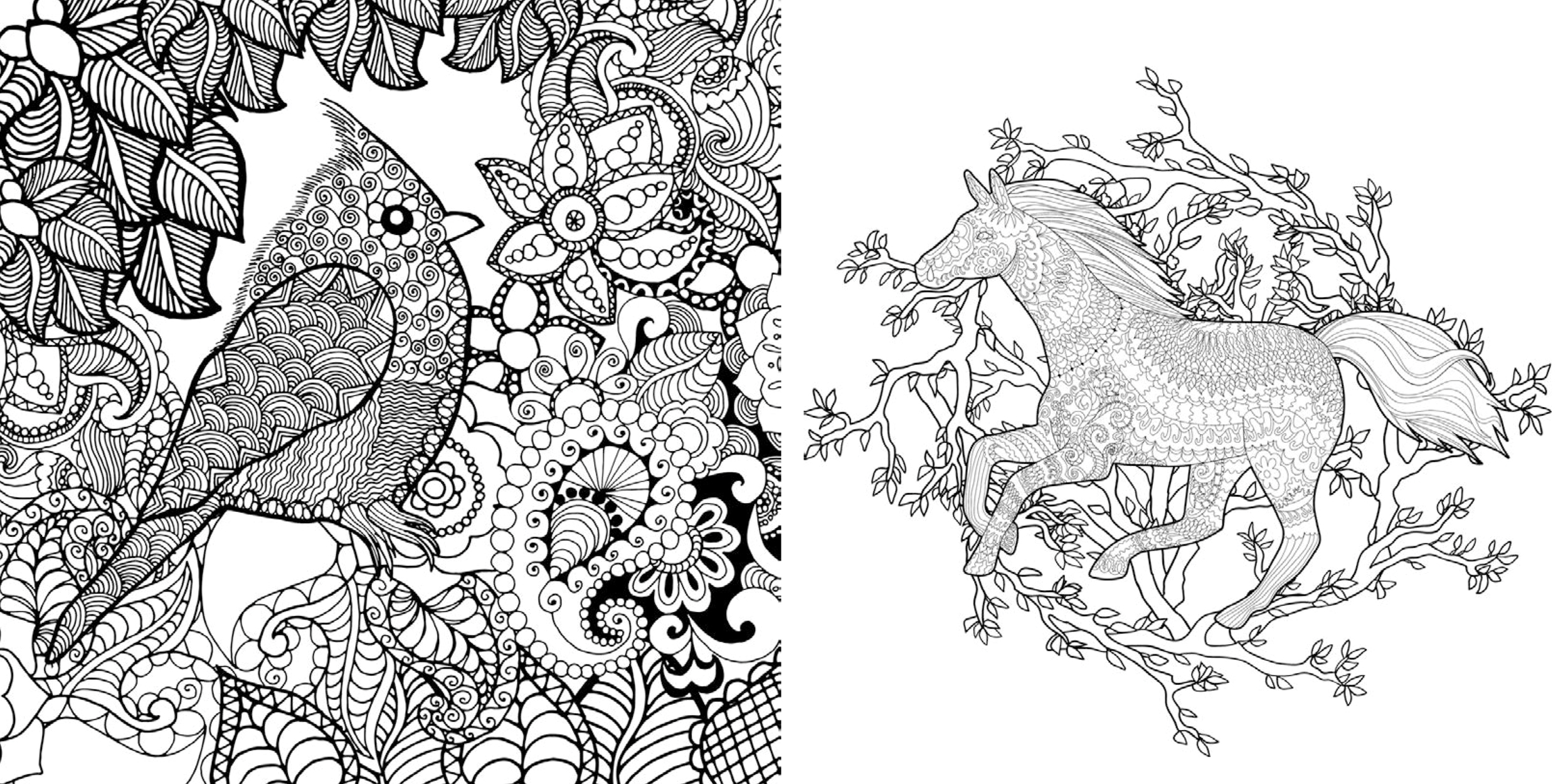 O carte de colorat cu ilustrații spectaculoase ce îmbină lumea animalelor cu elemente magice și decorative.