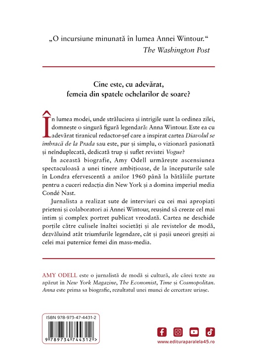 AMY ODELL este o jurnalistă de modă și cultură, ale cărei texte au apărut în New York Magazine, The Economist, Time și Cosmopolitan. Anna este prima sa biografie, rezultatul unei munci de cercetare uriașe.