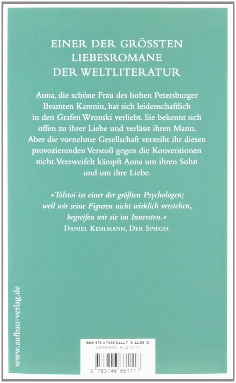 Im Hause von Stiwa Oblonski ist alles aus dem Gleise geraten, denn er hat mal wieder ein Verhältnis - diesmal mit einer früheren Gouvernante der Familie. Seine Schwester Anna, verheiratet mit dem hohen Petersburger Beamten Karenin, kommt als wahre Friedensstifterin in all die Aufregung. Wenig später jedoch ist sie selbst in viel tieferen Nöten: Sie hat sich in den schönen jungen Grafen Wronski verliebt und bekennt sich zu ihrer Liebe. Einer Frau verzeiht die Gesellschaft einen Verstoß gegen die Konventionen nicht so leicht wie dem flatterhaften Stiwa. Darüberhinaus verweigert der mächtige Karenin Anna die Scheidung und den Sohn.