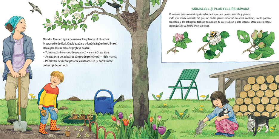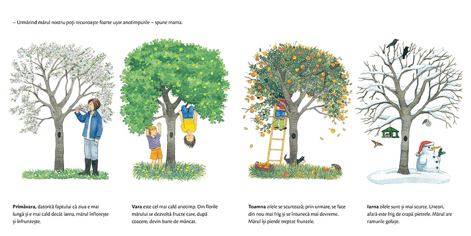 Primavara, vara, toamna și iarna – fiecare anotimp are particularitățile lui. Primăvara apar primele flori. Vara vine cu înghețată și cireșe. Toamna putem înălța zmeie. Iarna, natura face o pauză. Care anotimp îți place cel mai mult?