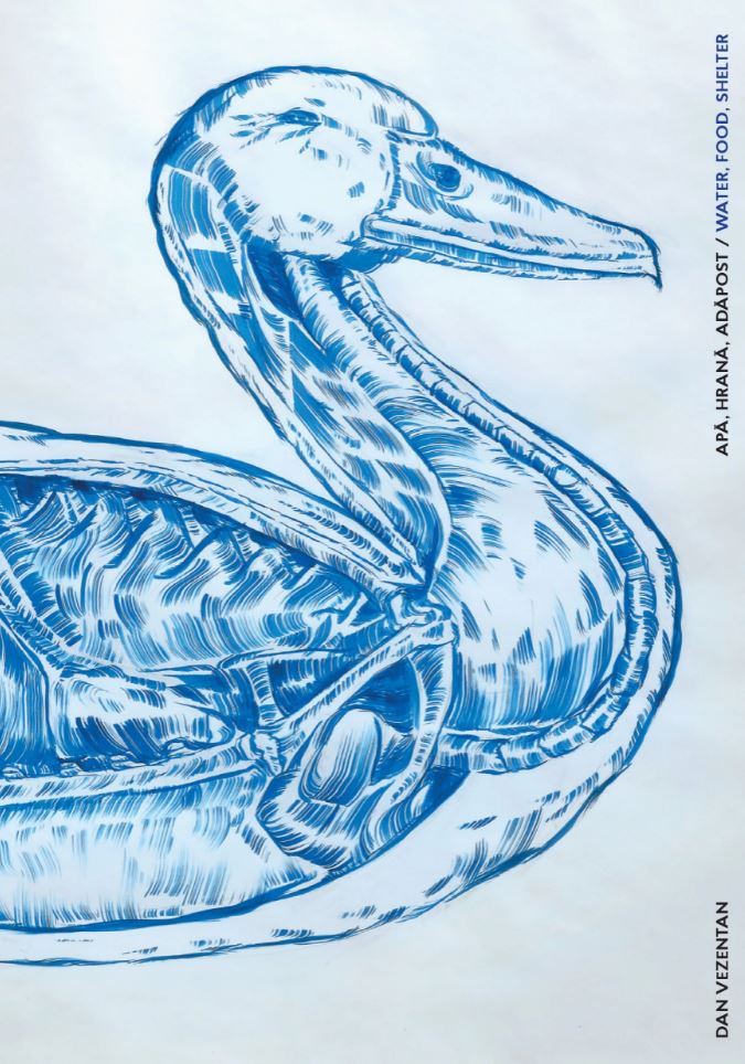 Aflată în oglinda expoziției Dan Vezentan. Apă, Hrană, Adăpost, broșura cuprinde documentarea fotografică a acesteia și lista lucrărilor expuse.