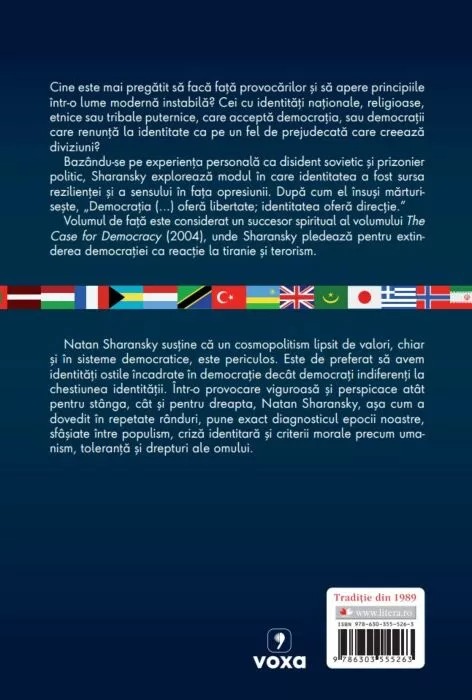 Natan Sharansky susține că un cosmopolitism lipsit de valori, chiar și în sisteme democratice, este periculos. Este de preferat să avem identități ostile încadrate în democrație decât democrați indiferenți la chestiunea identității. Într-o provocare viguroasă și perspicace atât pentru stânga, cât și pentru dreapta, Natan Sharansky, așa cum a dovedit în repetate rânduri, pune exact diagnosticul epocii noastre, sfâșiate între populism, criză identitară și criterii morale precum umanism, toleranță și drepturi ale omului.