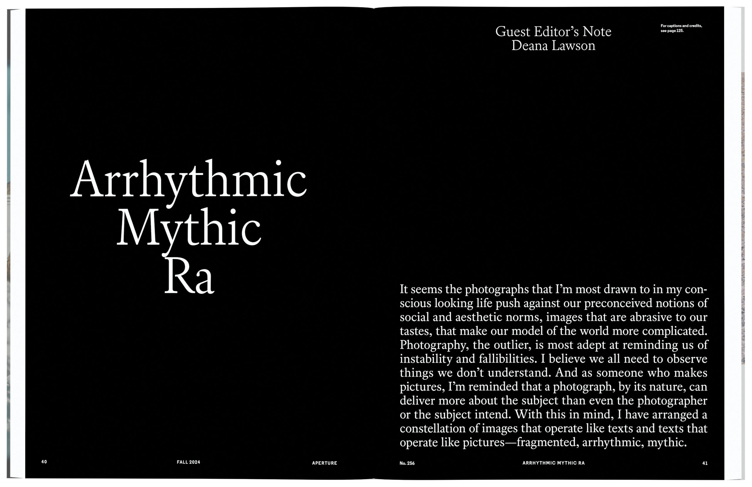 Aperture’s fall issue, “Arrhythmic Mythic Ra,” refracts themes of family, social history, and the astrophysical through the eyes of guest editor Deana Lawson, one of the most compelling photographers working today.
