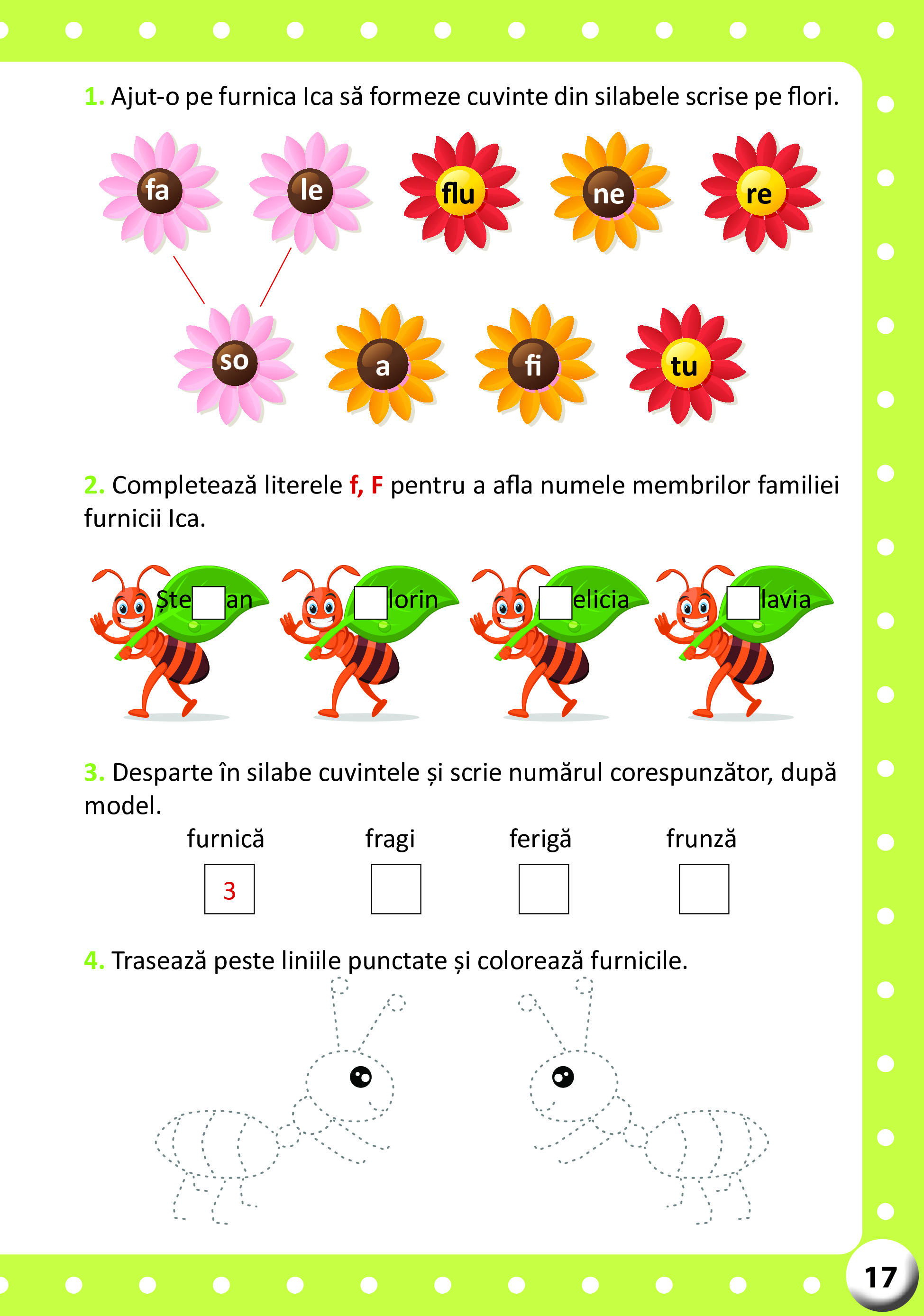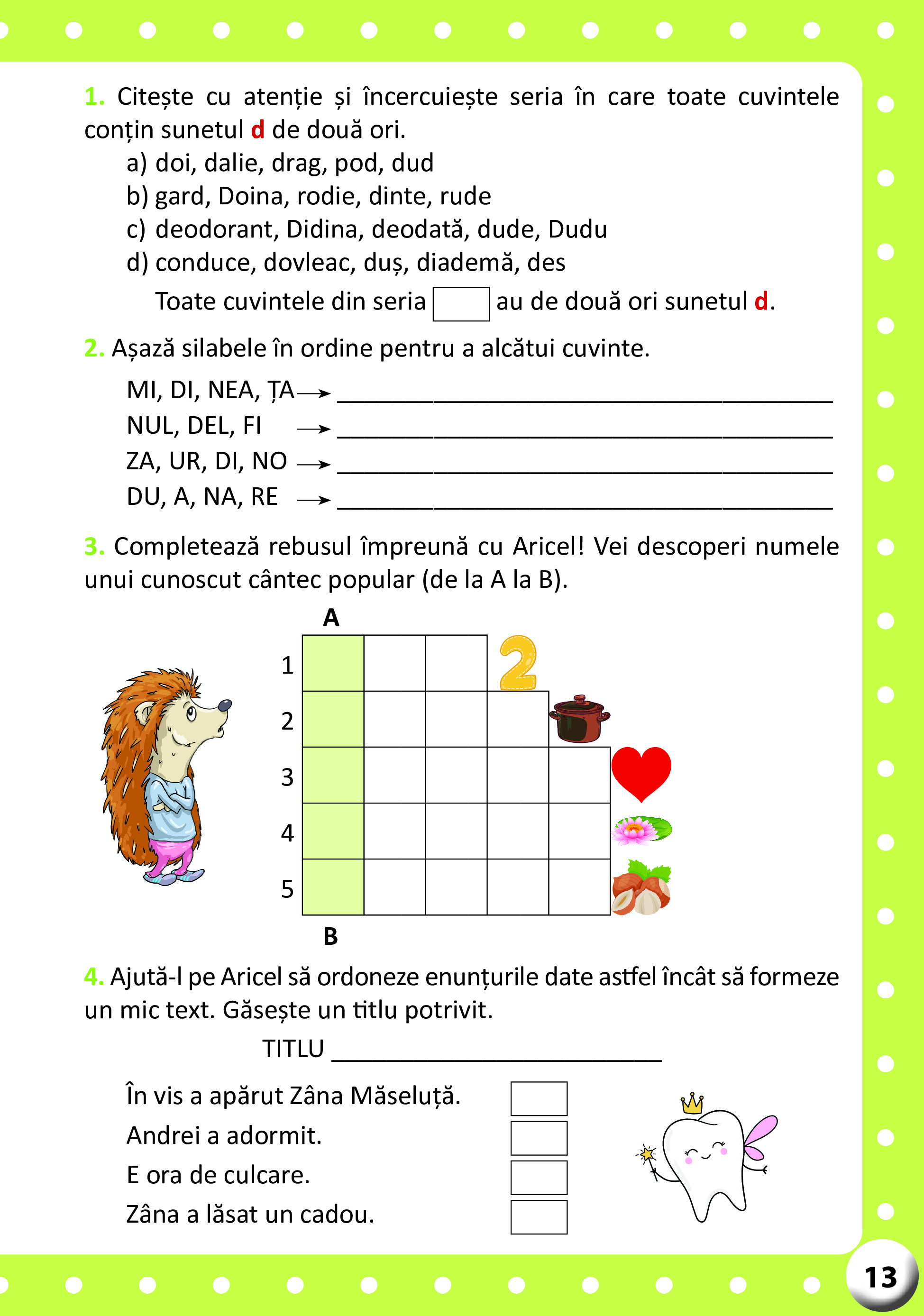 Auxiliarul este realizat în conformitate cu programa școlară și își propune, prin exerciții structurate progresiv, asigurarea unui demers didactic personalizat, bazat pe competenţele generale prevăzute la disciplina Comunicare în limba română, clasa I.