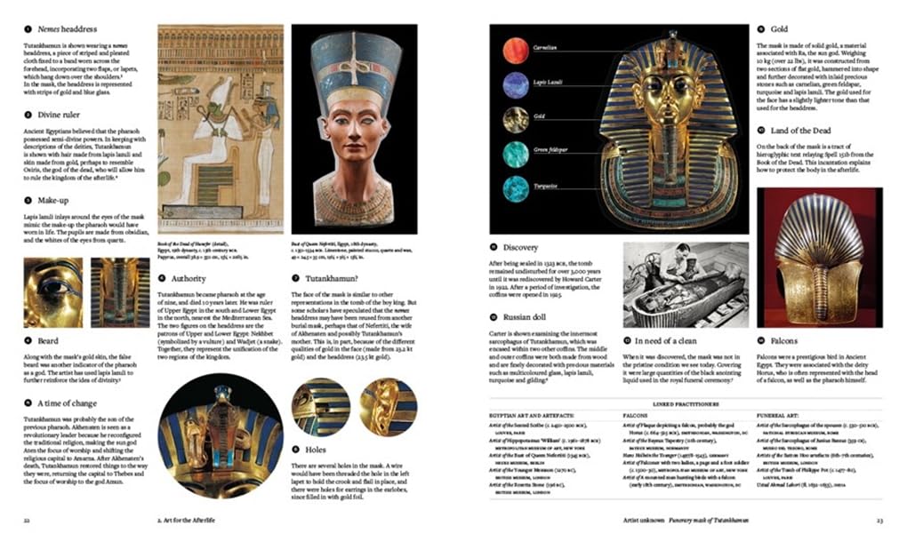Dating from the earliest times to the present, the artworks under analysis are drawn from many cultures and cover all forms of visual media, including drawing, illustration, photography, prints, and sculpture. Matthew Wilson’s simple approach, using established art historical methods, enables the reader to discover the fundamentals of art history, from considerations of function, historical context, iconography, and artists’ experience to broader issues of identity, including feminism, gender, and postcolonialism. Whether it’s the mask of Tutankhamun or Dorothea Lange’s photograph Migrant Mother, Katsushika Hokusai’s GreatWave or Kara Walker’s Gone, each image is dissected on the page in a no-nonsense style, with explanatory notes detailing artists’ sources of inspiration, associated styles and movements, plus any relevant quotes, related visuals, and other contextual and issue-led information with keywords for handy cross-referencing. The resulting book is a dynamic visual resource that will inspire and spark enjoyment of art in all its forms.