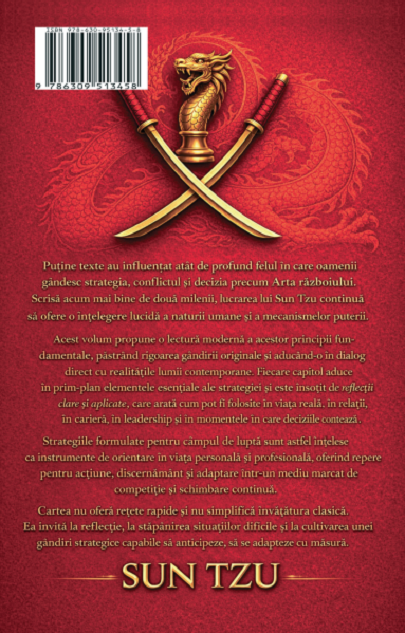 „Putine texte au influentat atat de profund felul in care oamenii gandesc strategia, conflictul si decizia precum Arta razboiului. Scrisa acum mai bine de doua milenii, lucrarea lui Sun Tzu continua sa ofere o intelegere lucida a naturii umane si a mecanismelor puterii.