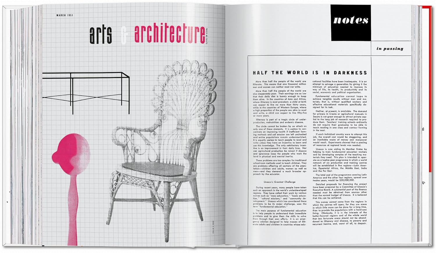 The complete facsimile of the ambitious and groundbreaking Arts & Architecture was published by TASCHEN in 2008 as a limited edition. This new curatio - directed and produced by Benedikt Tasche - brings together the magazine’s highlights from 1950 to 1954, with a special focus on mid-century American architecture and its luminary pioneers including Richard Neutra, Eero Saarinen, and Charles & Ray Eames.