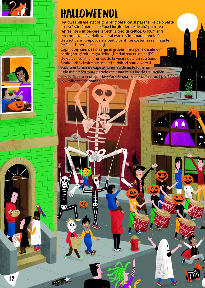 De asemenea, atlasul de faţă reprezintă o minunată ocazie de a cunoaşte și a sărbători incredibila diversitate culturală a lumii în care trăim: de la festivalurile ce au loc aproape de Polul Nord până la dansurile amuzante din centrul Africii, de la Ziua Morților care se celebrează în Mexic până la Carnavalul de la Rio de Janeiro, din Brazilia.