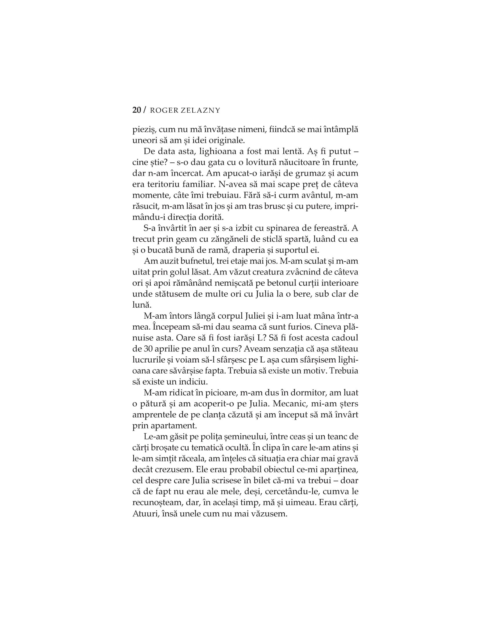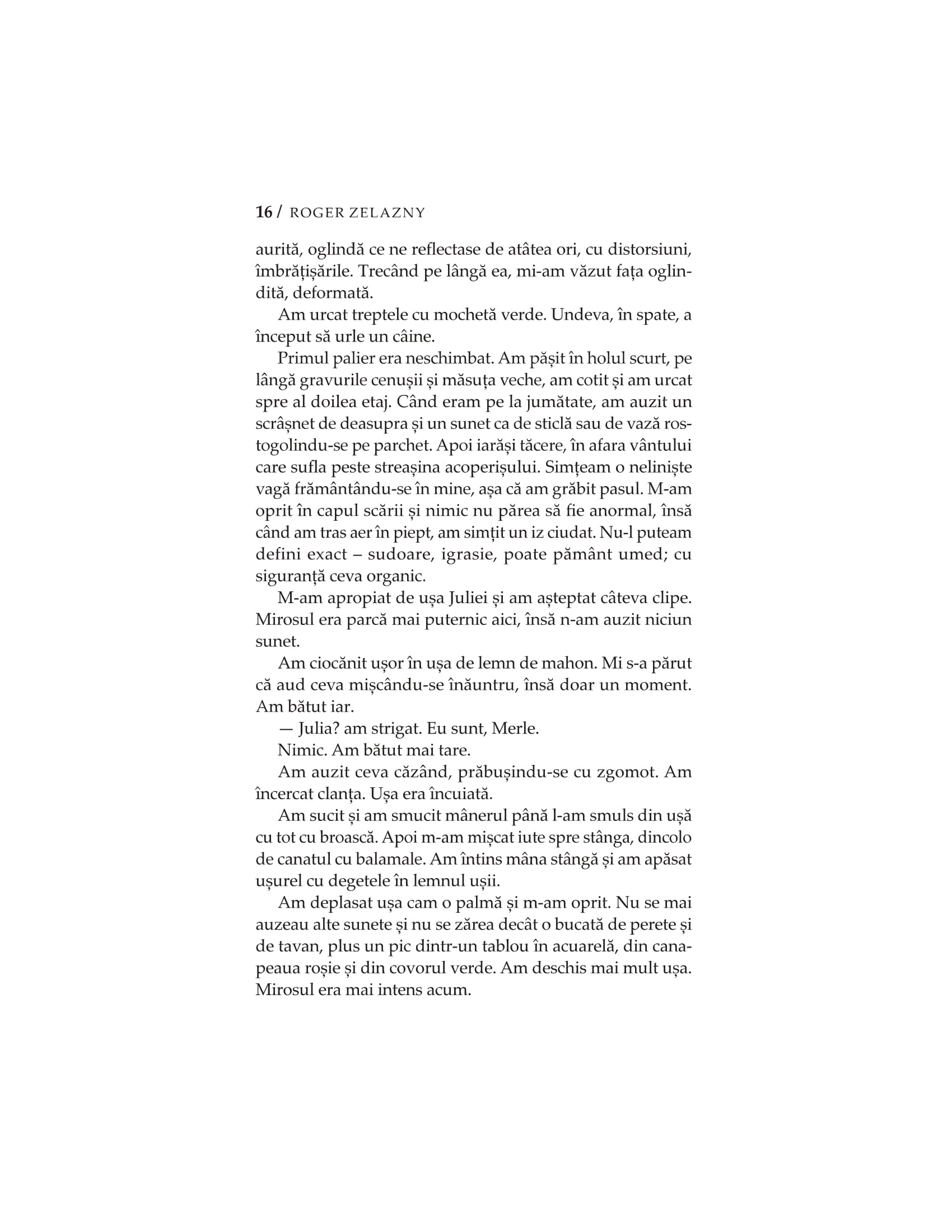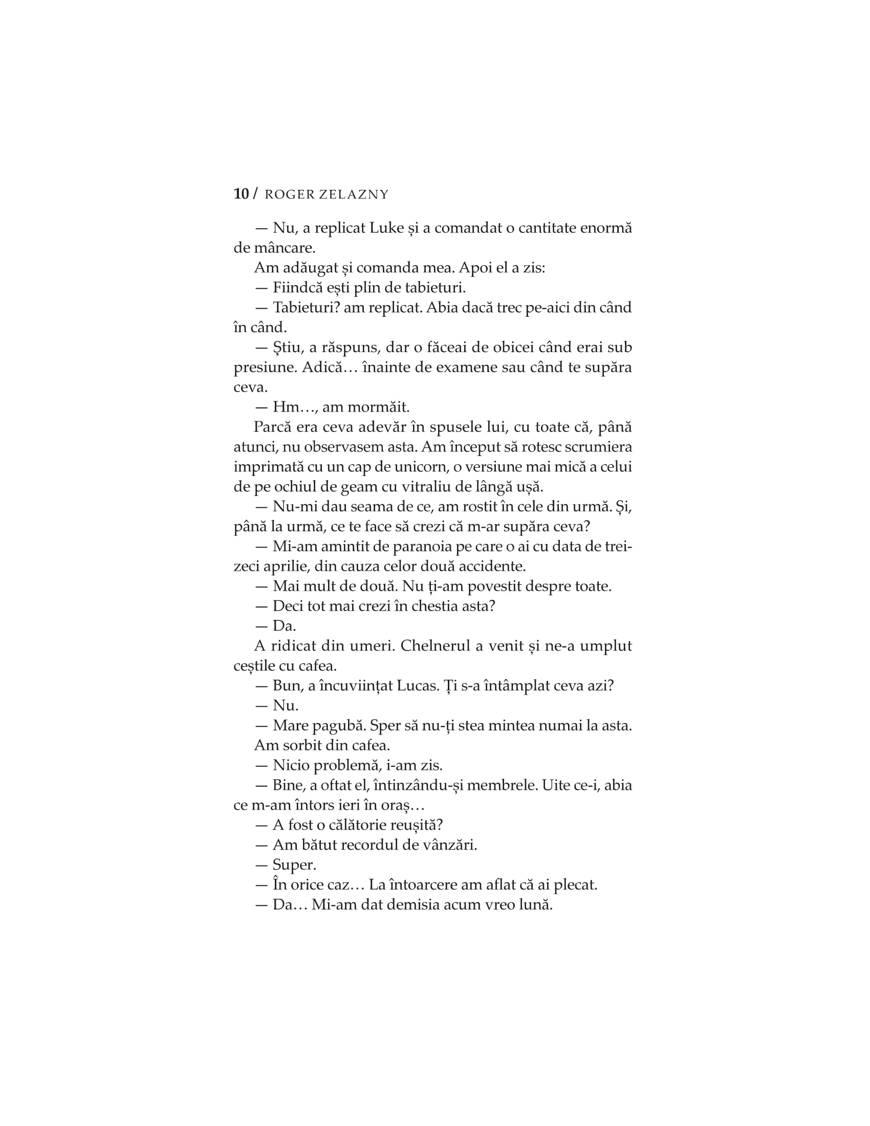 Merlin nu reușește să stea mult timp departe de tărâmul magic al Amberului. Incidentele din ultimii ani de pe umbra Pământ, toate petrecute în ziua de 30 aprilie, nu mai par a fi simple coincidențe, ci tentative reale de omor. Atunci când fosta lui iubită este ucisă de o fiară neobișnuită și în cale îi apar persoane misterioase care îi cunosc adevărata identitate, fiul lui Corwin decide să se întoarcă în Amber, unde descoperă că familia regală se confruntă cu un dușman pornit să-i distrugă pe urmașii lui Oberon.