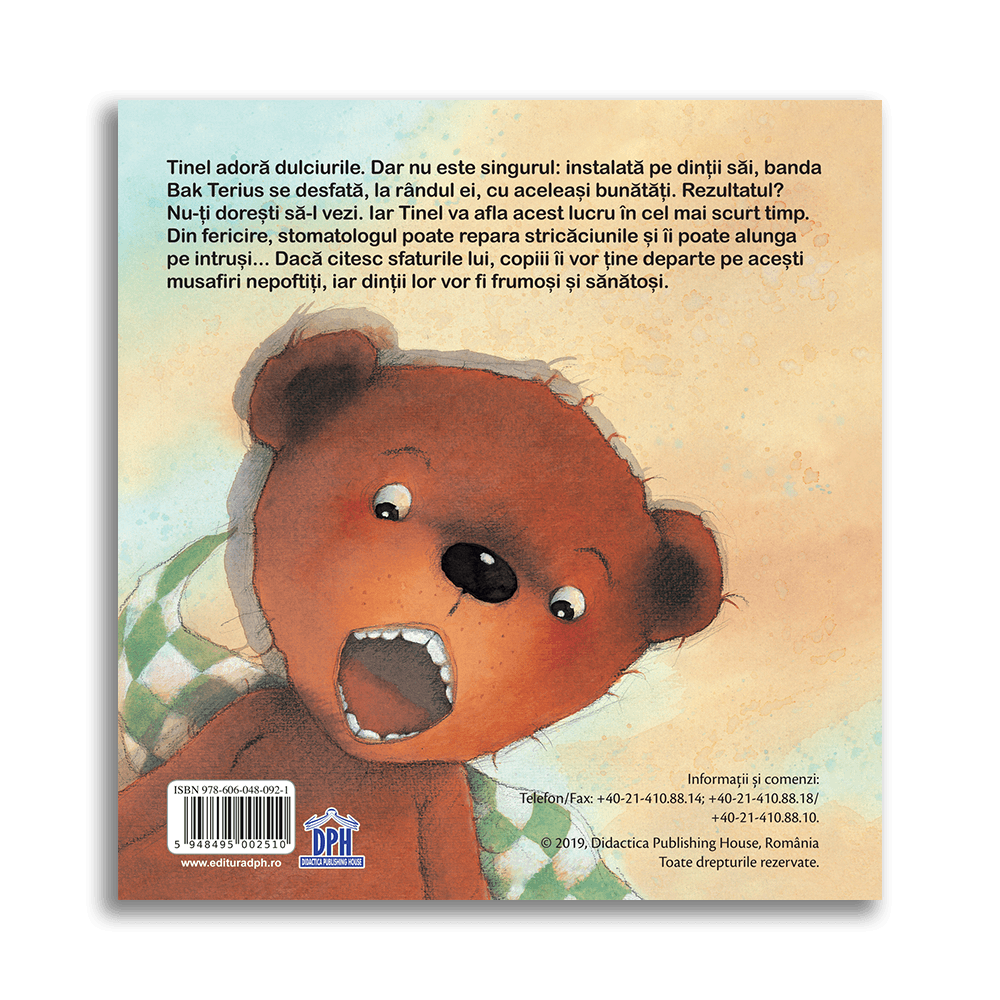 Tinel adoră dulciurile. Dar nu este singurul: instalată pe dinții săi, banda Bak Terius se desfată, la rândul ei, cu aceleași bunătăți. Rezultatul? Nu-ți dorești să-l vezi. Iar Tinel va afla acest lucru în cel mai scurt timp. Din fericire, stomatologul poate repara stricăciunile și îi poate alunga pe intruși... Dacă citesc sfaturile lui, copiii îi vor ține departe pe acești musafiri nepoftiți, iar dinții lor vor fi frumoși și sănătoși.