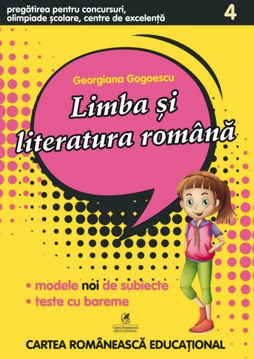 Culegerea Limba si literatura romana. Pregatire pentru concursuri, olimpiade scolare si centre de excelenta pentru clasa a IV-a este un auxiliar didactic, un instrument util cadrului didactic, dar mai ales elevului, fiind parte componenta a unui grupaj de lucrari alcatuite coerent, sprijinindu-se pe recomandarile Ministerului Educatiei Nationale cuprinse in programele de invatamant si pe metodologiile didactice diseminate in cadrul inspectoratelor scolare si cercurilor pedagogice, la care s-au adaugat experienta si competenta autoarei.