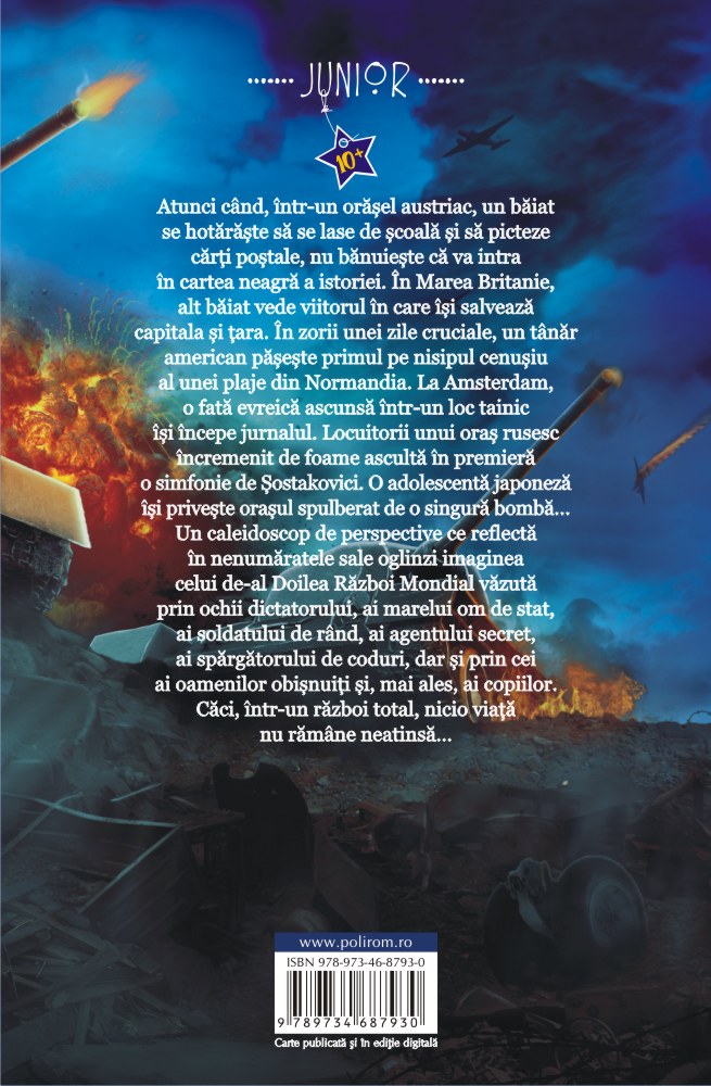 Un caleidoscop de perspective ce reflectă în nenumăratele sale oglinzi imaginea celui de-al Doilea Război Mondial văzută prin ochii dictatorului, ai marelui om de stat, ai soldatului de rând, ai agentului secret, ai spărgătorului de coduri, dar și prin cei ai oamenilor obișnuiți și, mai ales, ai copiilor. Căci, într-un război total, nicio viață nu rămâne neatinsă…