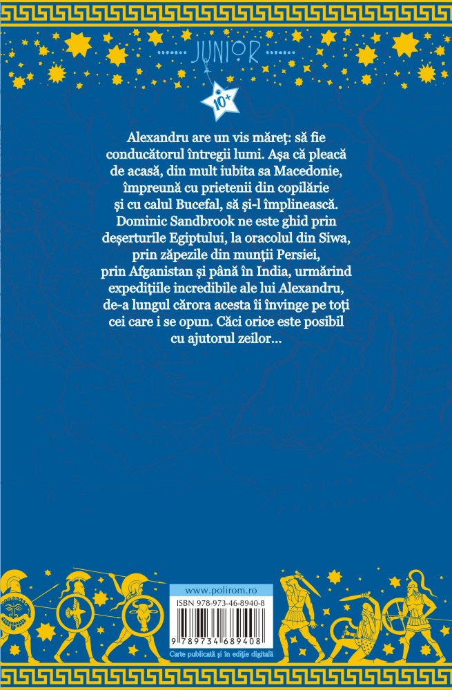 Alexandru are un vis măreț: să fie conducătorul întregii lumi. Așa că pleacă de acasă, din mult iubita sa Macedonie, împreună cu prietenii din copilărie și cu calul Bucefal, să și-l împlinească. Dominic Sandbrook ne este ghid prin deșerturile Egiptului, la oracolul din Siwa, prin zăpezile din munții Persiei, prin Afganistan și până în India, urmărind expedițiile incredibile ale lui Alexandru, de-a lungul cărora acesta îi învinge pe toți cei care i se opun. Căci orice este posibil cu ajutorul zeilor…