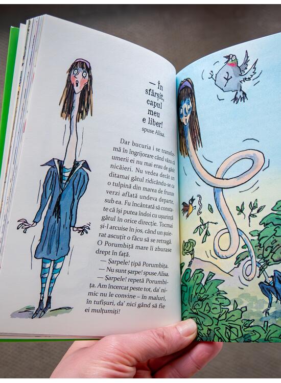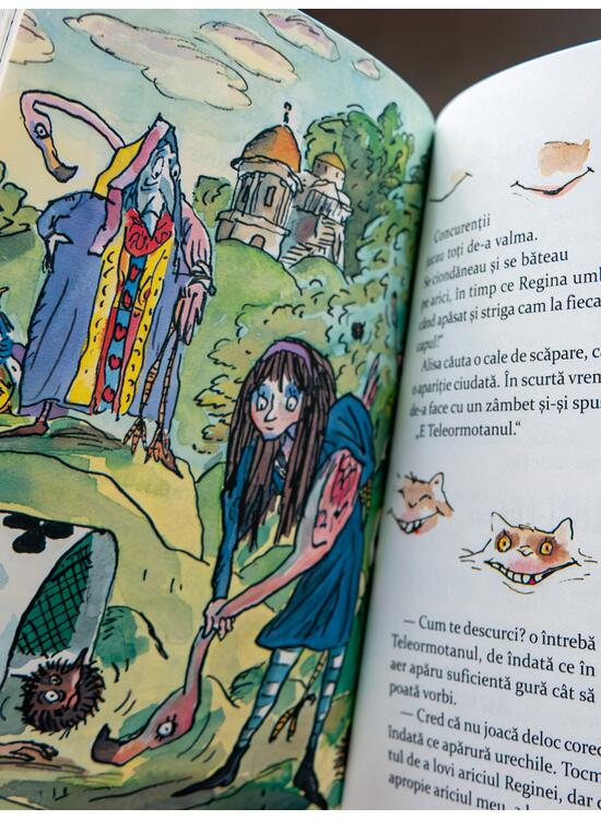 Surprinzând perfect umorul și absurditatea poveștii originale, această ediție este prescurtată cu grijă pentru cititorii de vârste mai mici și ilustrată splendid de Tony Ross, autor și ilustrator cunoscut în întreaga lume.