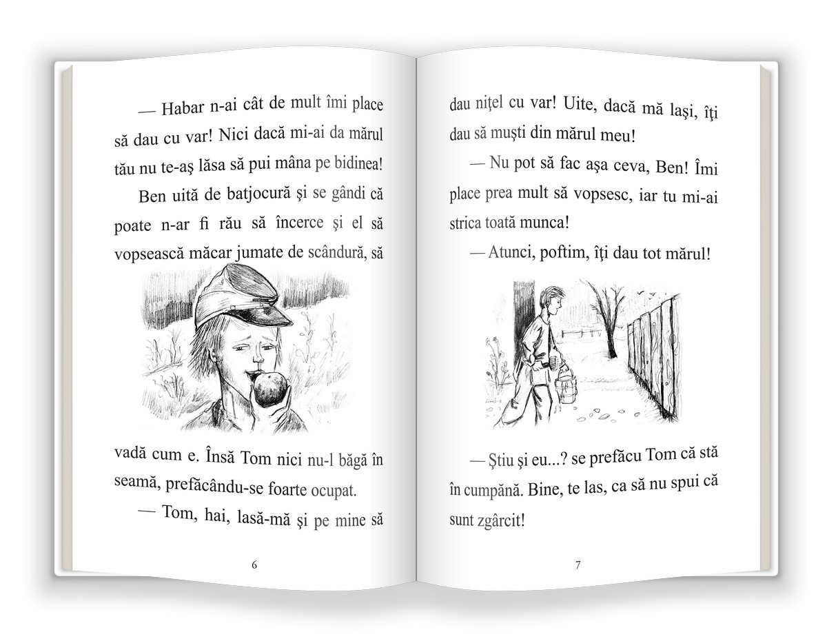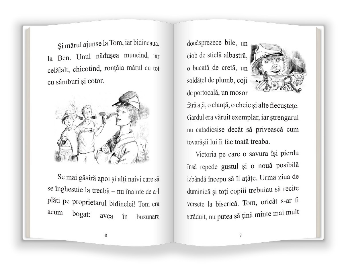„Aventurile lui Tom Sawyer”, eroul lui Mark Twain, într-o versiune prescurtată, potrivită pentru elevii care doresc să se familiarizeze cu unul dintre cele mai frumoase romane ale literaturii universale pentru copii. Cartea îl va ajuta pe copil să își exerseze citirea. Ilustrațiile alb-negru de pe pagini și fontul de dimensiuni mari vor face ca textul să fie mai răsfirat și implicit, ca lectura să fie mai atrăgătoare și mai ușor de parcurs.