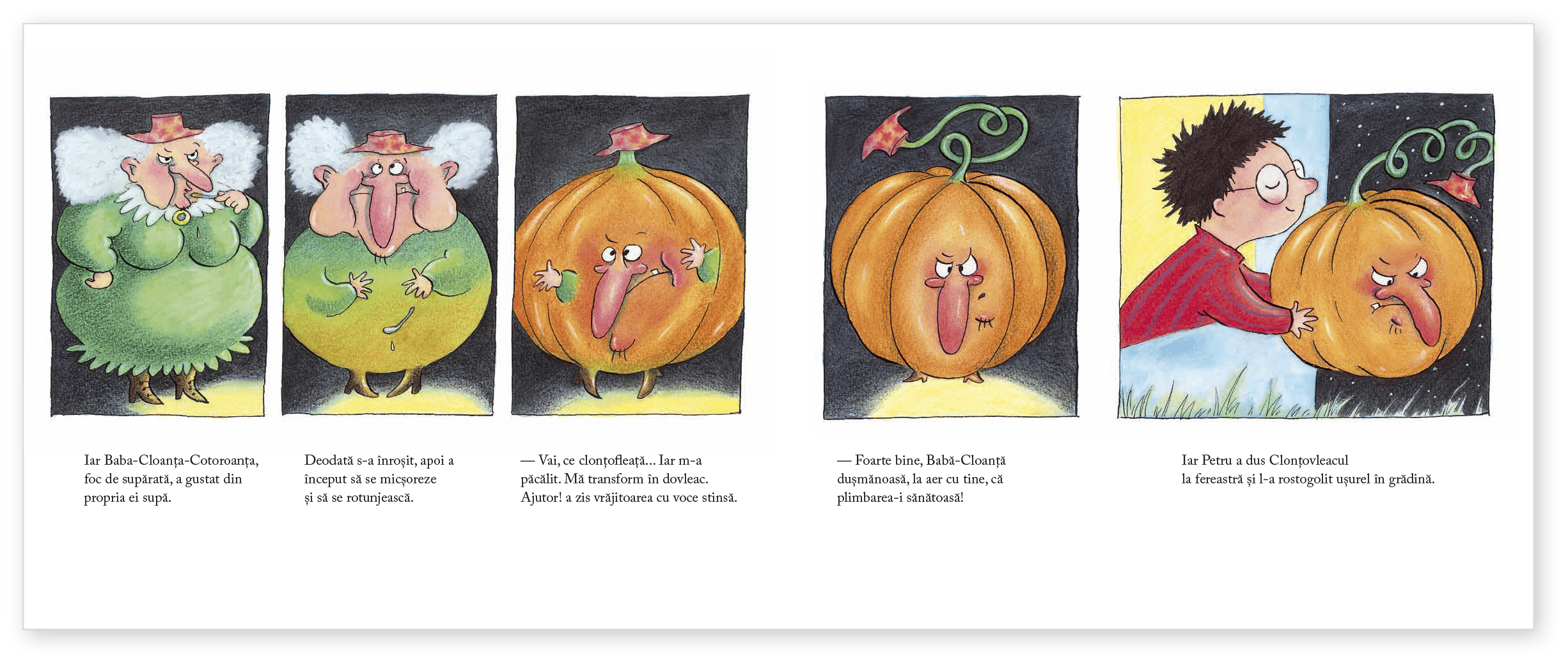 În albumul Baba-Cloanța-Cotoroanța, primul titlu al seriei, Petru a fost suficient de isteț și curajos pentru a reuși să scape de groaznica vrăjitoare ascunsă în dulap. Dar iată, Baba-Cloanța-Cotoroanța nu dispare pur și simplu. Ea se întoarce și nu este tocmai binedispusă!