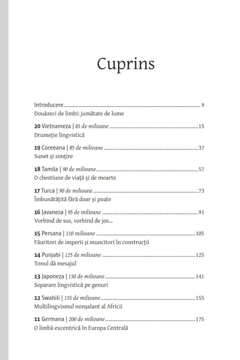 Gaston Dorren face o incursiune de profunzime în istoria celor mai vorbite 20 de limbi de pe glob, cu particularitățile, bizareriile și poveștile extraordinare ale devenirii lor.