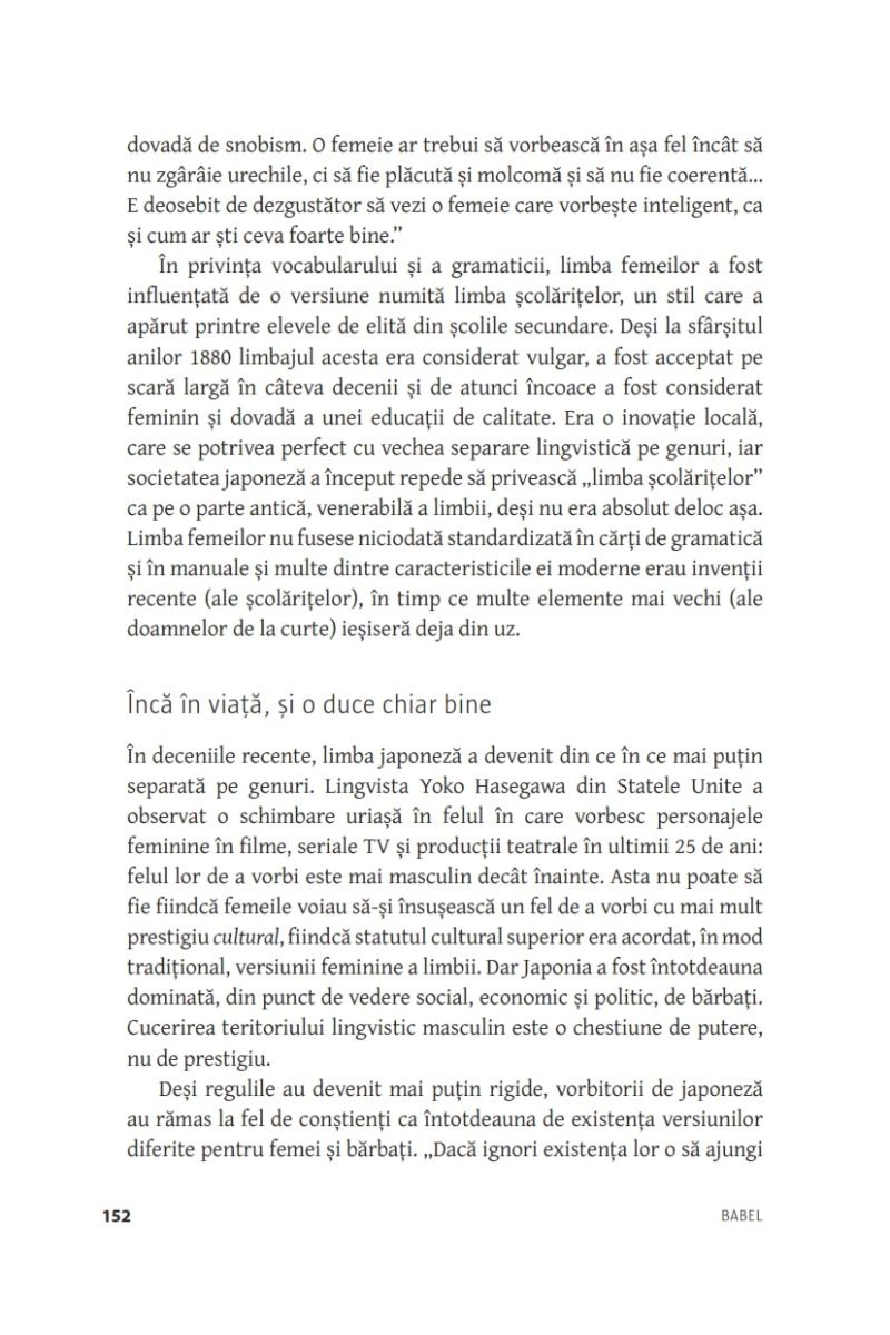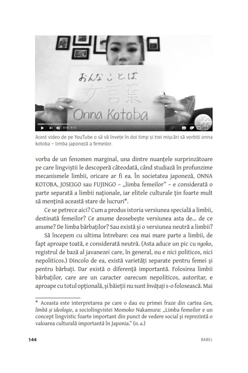 Combinând lingvistica și istoria culturii, Babel ne invită în cel mai intrigant tur al lumii, răspunzând unor întrebări ce adesea au rămas doar un ecou pentru mulți: cum a reușit micuța Portugalie să dea una dintre cele mai vorbite limbi de pe glob, iar Olanda, nu?; de ce femeile din Japonia vorbesc diferit față de bărbații japonezi?; ce înseamnă pentru ruși să fii "înrudit" cu Engleza? sau cum reușeste scisul non-alfabetic din India și China să răspundă acelorași nevoi ca alfabetul nostru, cu cele 26 de litere?