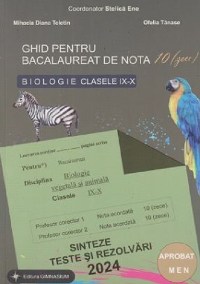 Biologie 2022 clasele 9-10. Ghid pentru bacalaureat de nota 10. Sinteze teste si rezolvari (coord. Stelica Ene) este o lucrare alcatuita de un comitet de profesori si cuprinde informatii din manualele de biologie sintetizate si prezentate intr-un format succint si insotite de teste pentru evaluarea cunostiintelor dupa fiecare capitol.