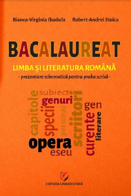 Bacalaureat. Limba si literatura romana - prezentare schematica pentru proba scrisa este o carte pentru adolescentul de astazi. Reprezentarea schematica aduce o eleganta simplitate pentru a asimila cat mai repede si mai usor punctele-cheie ale textelor literare necesare la examen, puncte pe care le poti dezvolta intr-un eseu original privind tema si viziunea despre lume, dar si relatia dintre doua personaje sau particularitatile de constructie a unui personaj. De asemenea, paginile acestei carti prezinta o modalitate eficienta de organizare a informatiei si ofera un tipar de elaborare a unui eseu pentru fiecare text, intr-un limbaj usor accesibil. Continutul cartii se adreseaza si celor care au o pasiune pentru disciplina limba si literatura romana, dar si celor carora informatia le este necesara doar pentru a-si urma propria lor pasiune.