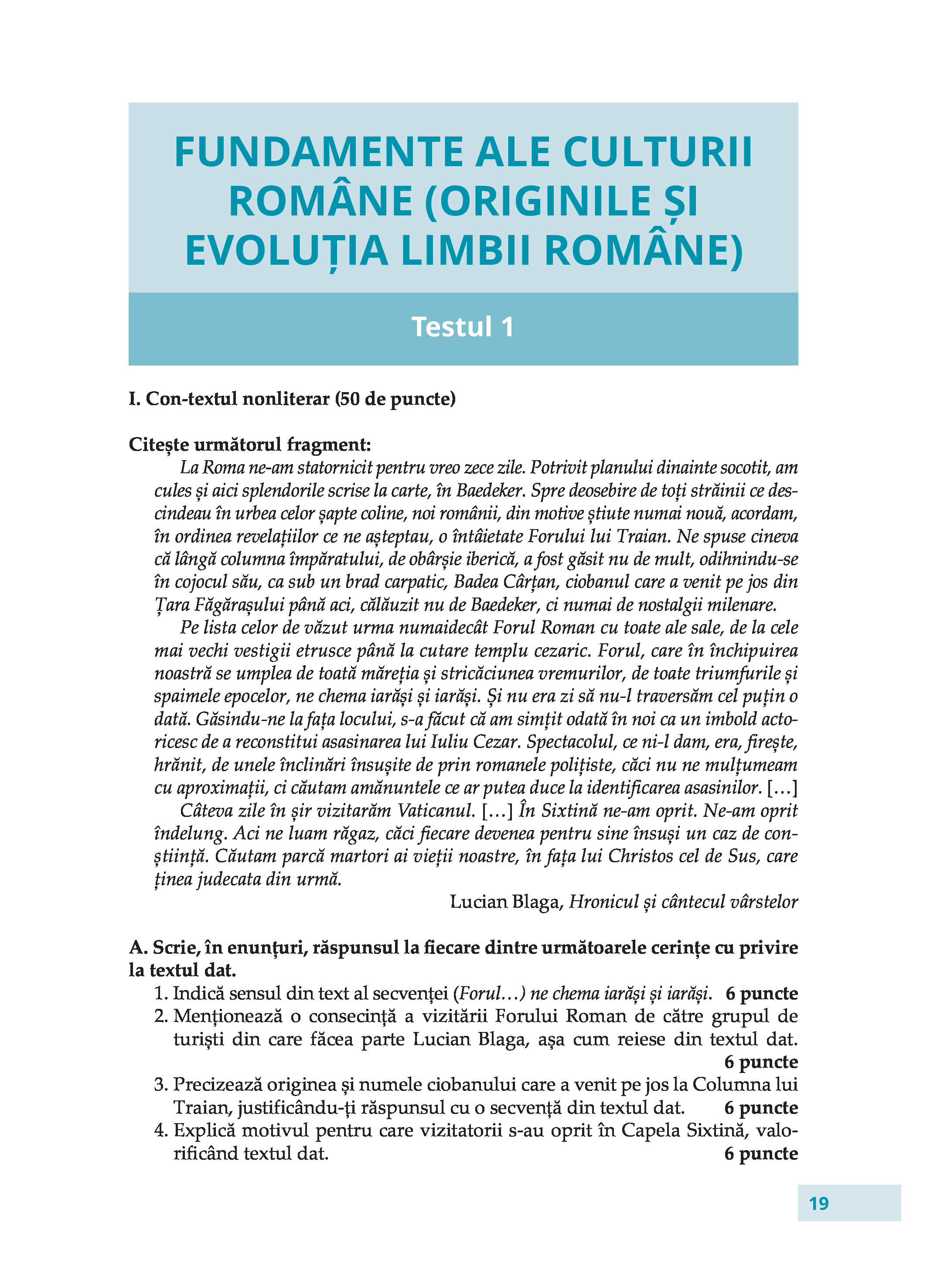 Prin această lucrare le propunem elevilor un antrenament consistent pentru abordarea optimă a subiectelor I şi al II-lea, care însumează 60 de puncte din totalul de 100 de puncte. împreună cu celelalte lucrări ale noastre - Eseul.
