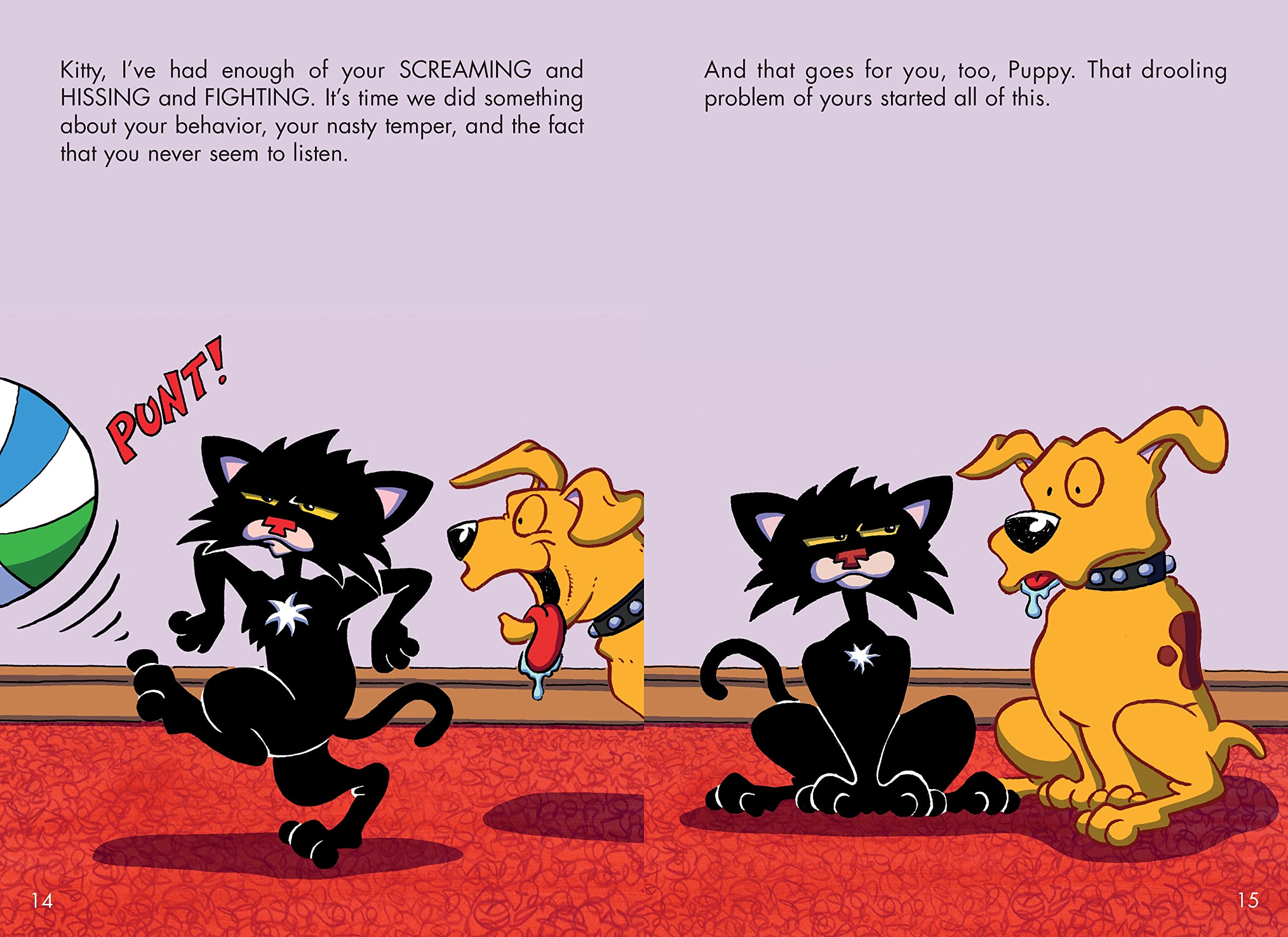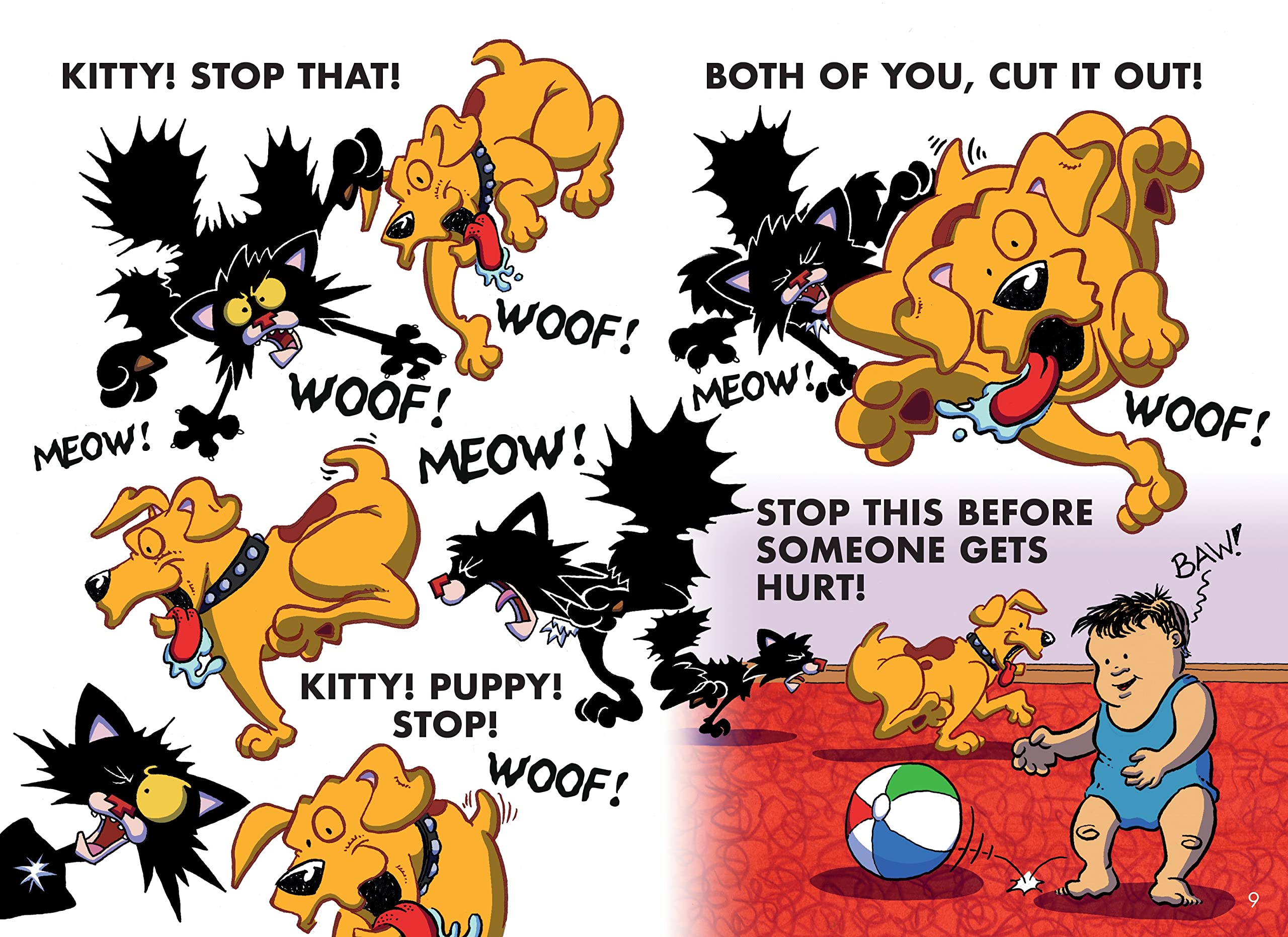 In the latest full-color reissue of the New York Times-bestselling series, Kitty and Puppy are out of control! They're screaming, fighting, hissing, and drooling all over the house, and all of the commotion is upsetting Baby. Time for school--obedience school, that is. Can Kitty learn to follow the rules and make friends with the other students, or will she bring chaos to the classroom?