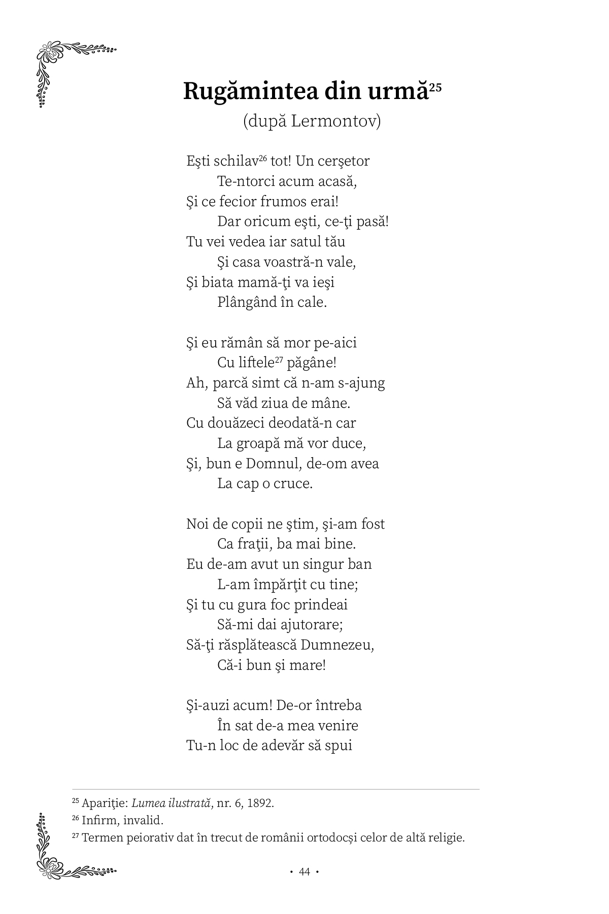 Poeziile sunt reproduse din ediția „Opere alese” din 1966, îngrijită de Gavril Scridon, respectând autenticitatea textului original. Textul este adaptat conform DOOM3, facilitând accesul cititorilor contemporani la opera clasică. Această ediție cuprinde informații suplimentare despre viața și activitatea literară a poetului, oferind context istoric și literar.