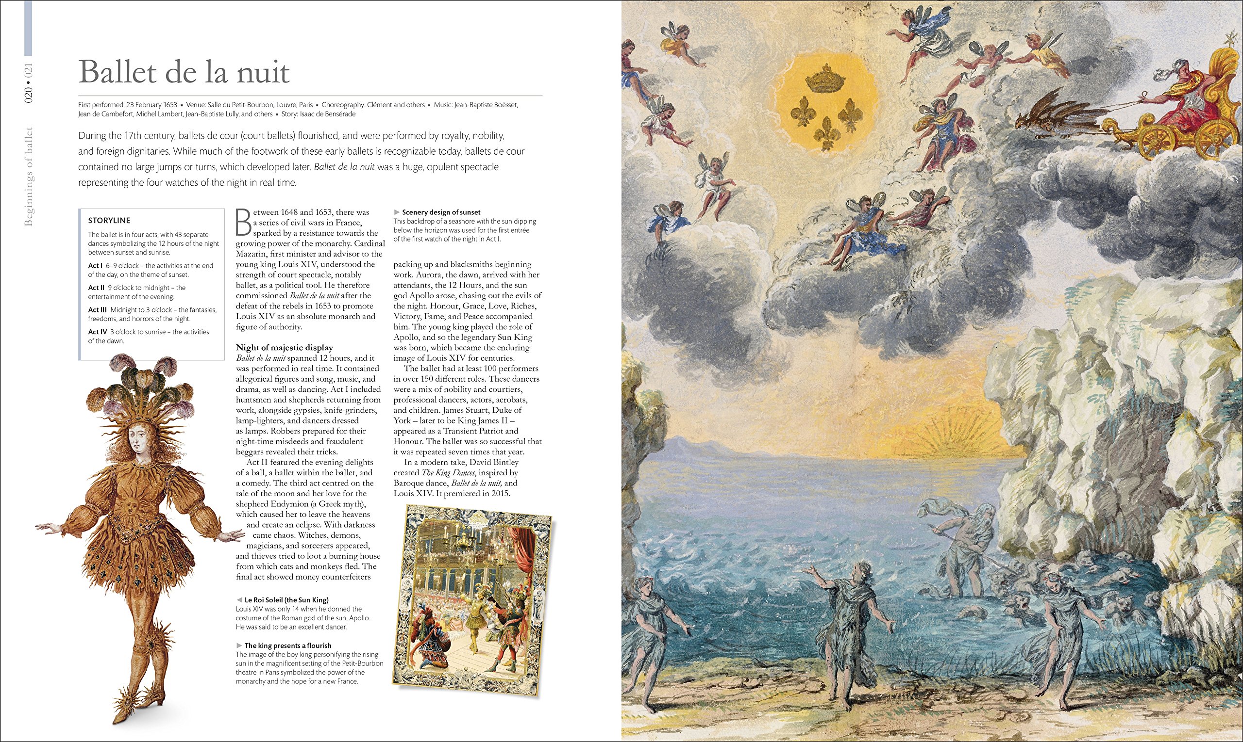 Discover more than 70 of the most famous ballet dances, from The Nutcracker and Swan Lake to The Rite of Spring. Learn the stories behind renowned companies such as The Royal Ballet and the Bolshoi Ballet. Explore the lives and achievements of ballet dancers across the centuries, such as Margot Fonteyn, Carlos Acosta, and Darcey Bussell, and meet composers and choreographers, from Pyotr Ilyich Tchaikovsky to Matthew Bourne.