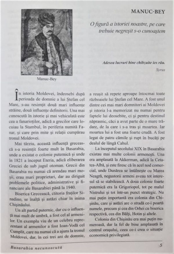 O enciclopedie complexă și valoroasă ce cuprinde documentări inedite despre istoria personalităților/intelectualilor din Basarabia. Autorul ne pune la dispoziție informații biografice, imagini fotografice, activitate politică/ administrativă, culturală etc., despre o întreagă pleiadă de personalități basarabene. Prezentarea personalităților, majoritatea nume necunoscute pentru cititori, este făcută într-o manieră foarte atractivă, accentul fiind pus pe activitatea culturală și/sau națională a acestora.