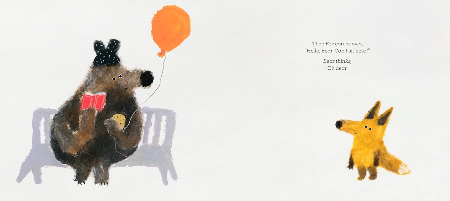 But no sooner has Bear made himself comfortable, than along comes Fox who wants to share the bench too. Bear agrees, begrudgingly. But no sooner has he overcome the idea of sharing his bench when Wolf pops up to ask for a bit of cookie . . . and then Rabbit jumps up to read his book . . . and then Elephant lumbers along to play with his balloon. And before Bear knows it, it's all become too much for him! AAAAAARGH! yells Bear.