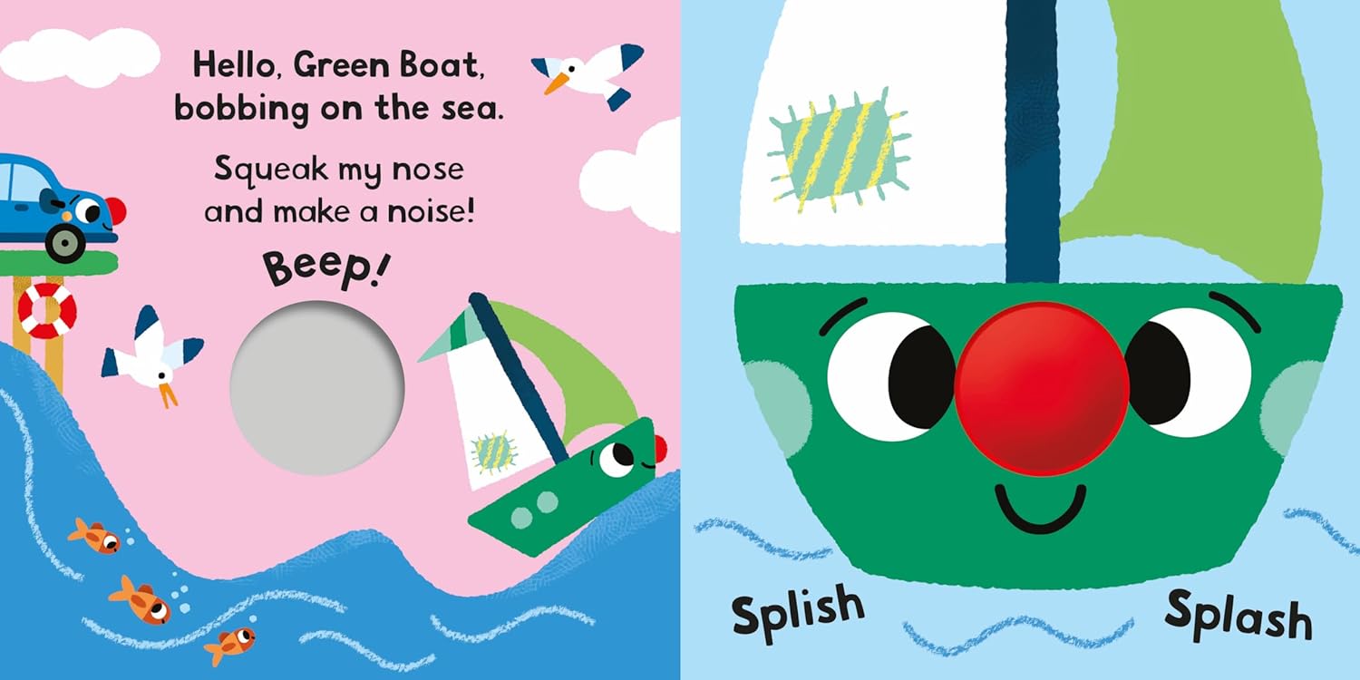Beep My Nose On the Move is perfect for enjoying first story times together. Even the littlest readers can press the soft squeaker on every page to join in with blue car and friends - then turn to the funny surprise mirror ending to squeak their own nose!