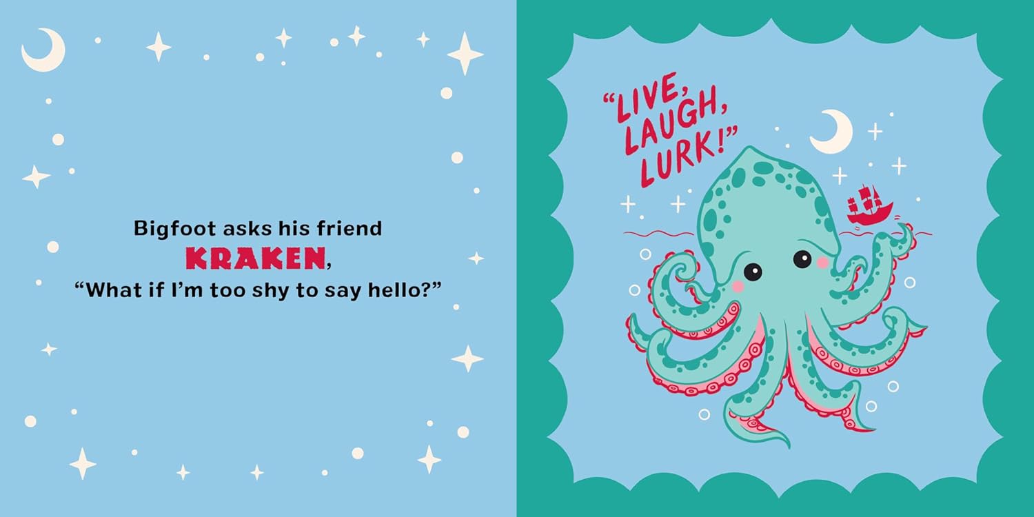 Even the most mysterious of creatures need a reminder to have confidence in themselves. Bigfoot is a cryptid, but some people don’t believe in these spooky creatures! He turns to his friends, Mothman, El Chupacabra, Kraken, Werewolf, Loch Ness Monster, Fresno Nightcrawler, Thunderbird, Wampus Cat, Yeti, and Jackalope, for support.