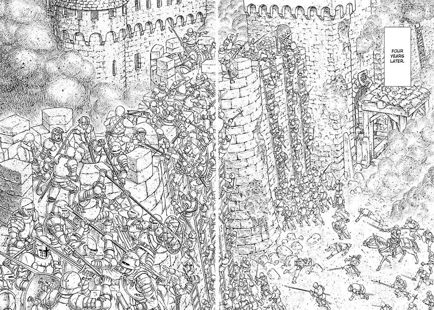 The reigning king of adult fantasy manga now in deluxe 7x10 hardcover editions! Born in tragedy, raised in abuse and neglect, young Guts is hardened into a warrior of fearsome prowess and fearless will, drawing the attention of the charismatic Griffith, commander of the elite mercenary legion, the Band of the Hawk. This crossroad will take Guts to fame and glory . . . and to damnation!