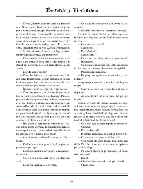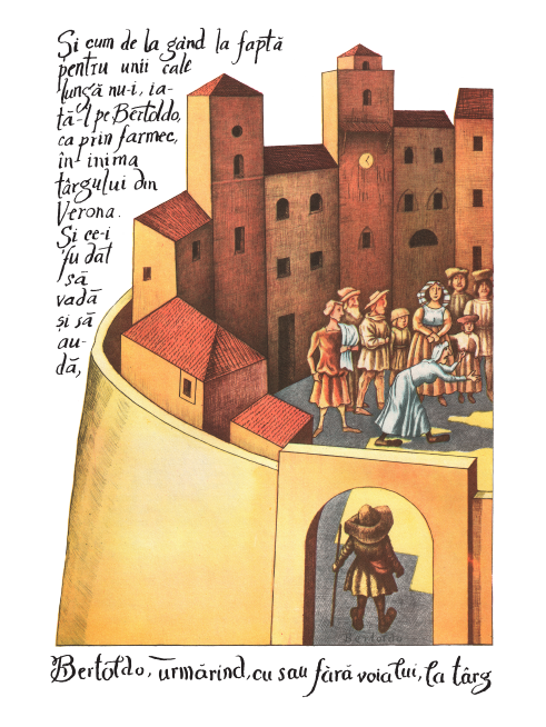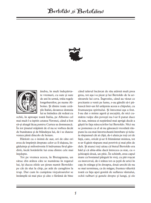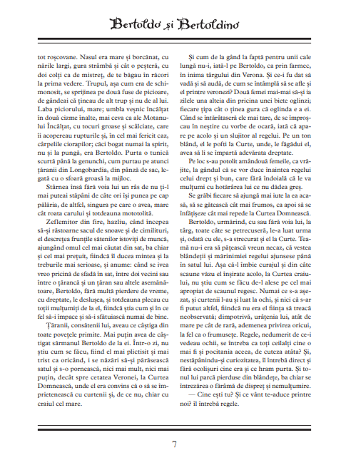 "Bertoldo, Bertoldino și Cacasenno" este o culegere de trei povestiri populare. Giulio Cesare Dalla Croce (1550 -1609) este autorul primelor două, care privesc pățaniile țăranilor Bertoldo și Bertoldino la curtea din Verona a lui Alboino. regele longobarzilor. Motivul derivă din Disputa lui Solomon cu Marcolfa, cunoscut în latină din secolul al XII-lea, apărut în numerose versiuni italiene de la începutul secolului al XVI-lea. Dalla Croce a dat povestirii o amprentă mai nouă și mai interesantă, nu atât schimbând locurile, tipurile sau numele (preexistente în tradiție), cât adăugând o încărcătură morală, opunând sănătoasa gândire țărănească rafinatei ipocrizii de la curte, cu o burlescă și distractivă vervă. Bertoldo e reprezentantul modestei universități a bunului-simț care este poporul, cu mintea lui ageră reușind să "vâre în sac" pe rege, regină și curteni. Ales sfetnic al regelui Alboino, el va muri destul de iute, "căci el fasole și-a dorit/nu i-au dat și a murit". Viața de la Curte, departe de cea simplă, țărănească, îi va fi fatală lui Bertoldo.