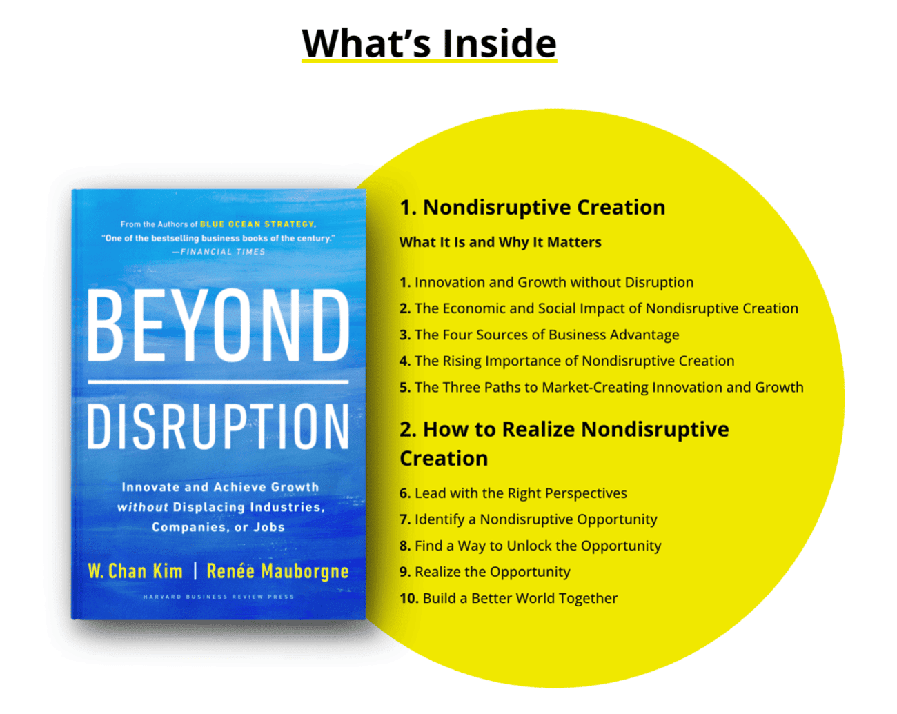 With three decades of research, the #1 global bestselling authors of Blue Ocean Strategy, W. Chan Kim and Renee Mauborgne, reveal another way to innovate and grow. Just as Blue Ocean Strategy redefined the essence of strategy as creating not competing, Beyond Disruption redefines and expands the existing view of innovation by introducing a new approach, nondisruptive creation, that is free from the destructive displacement that happens when innovators set out to disrupt.