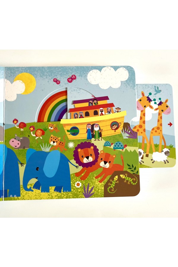 Fiecare povestioară biblică este însoțită de o activitate care îi va dezvolta copilului motricitatea fină și capacitatea senzorială: să deschidă „ferestruicile” din pagină, să învârtă rotița, să tragă „sertărașul” paginii, să simtă peticul de material.
