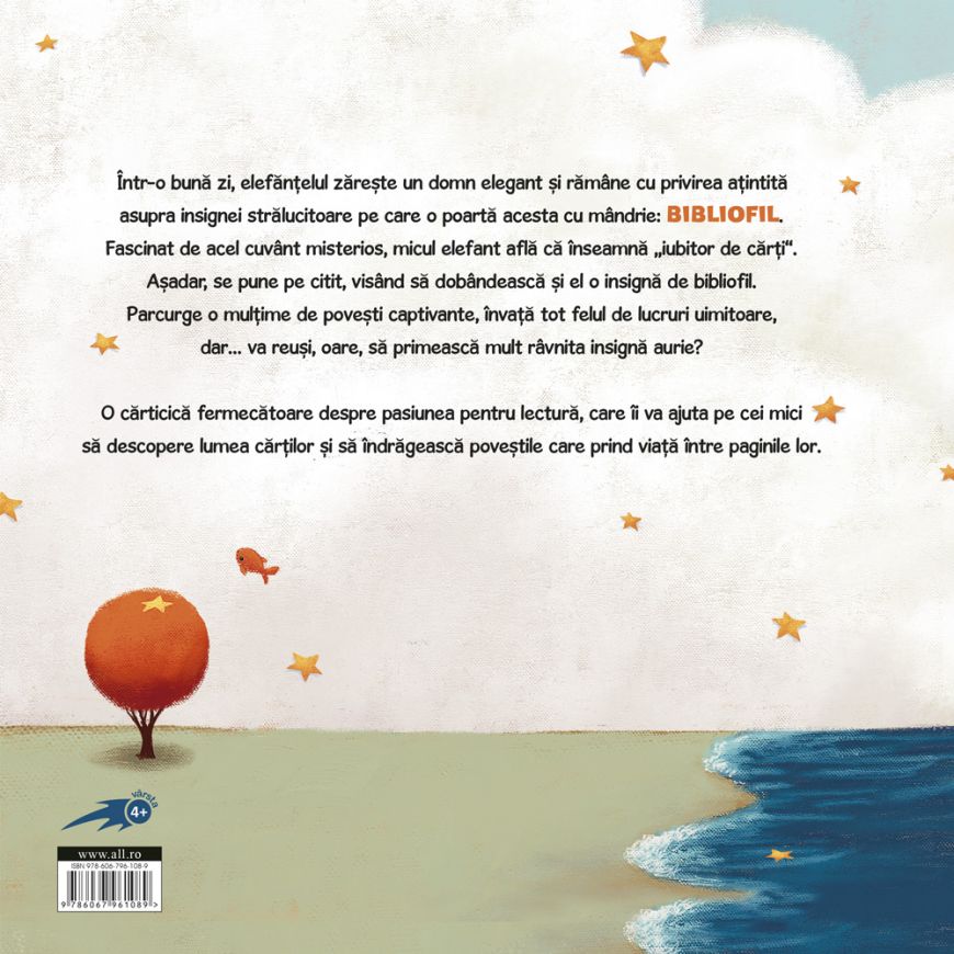 Între paginile acestui volum se ascunde secretul unei relații frumoase și îndelungate dintre copilul tău și lumea cărților. Dacă își exprimă deja curiozitatea în ceea ce privește minunățiile din biblioteca de acasă ori dacă pur și simplu ți-ar plăcea să îi insufli pasiunea pentru lectură, povestea elefănțelului îl va captiva cu siguranță. Hotărârea și perseverența personajului principal de a dobândi mult râvnita insignă rezervată iubitorilor de cărți îl vor inspira să își dorească și el să se bucure de aceeași recunoaștere. Atât textul, cât și ilustrațiile reușesc să le transmită cititorilor emoții autentice, care fac inima să tresalte și imaginația să înflorească.