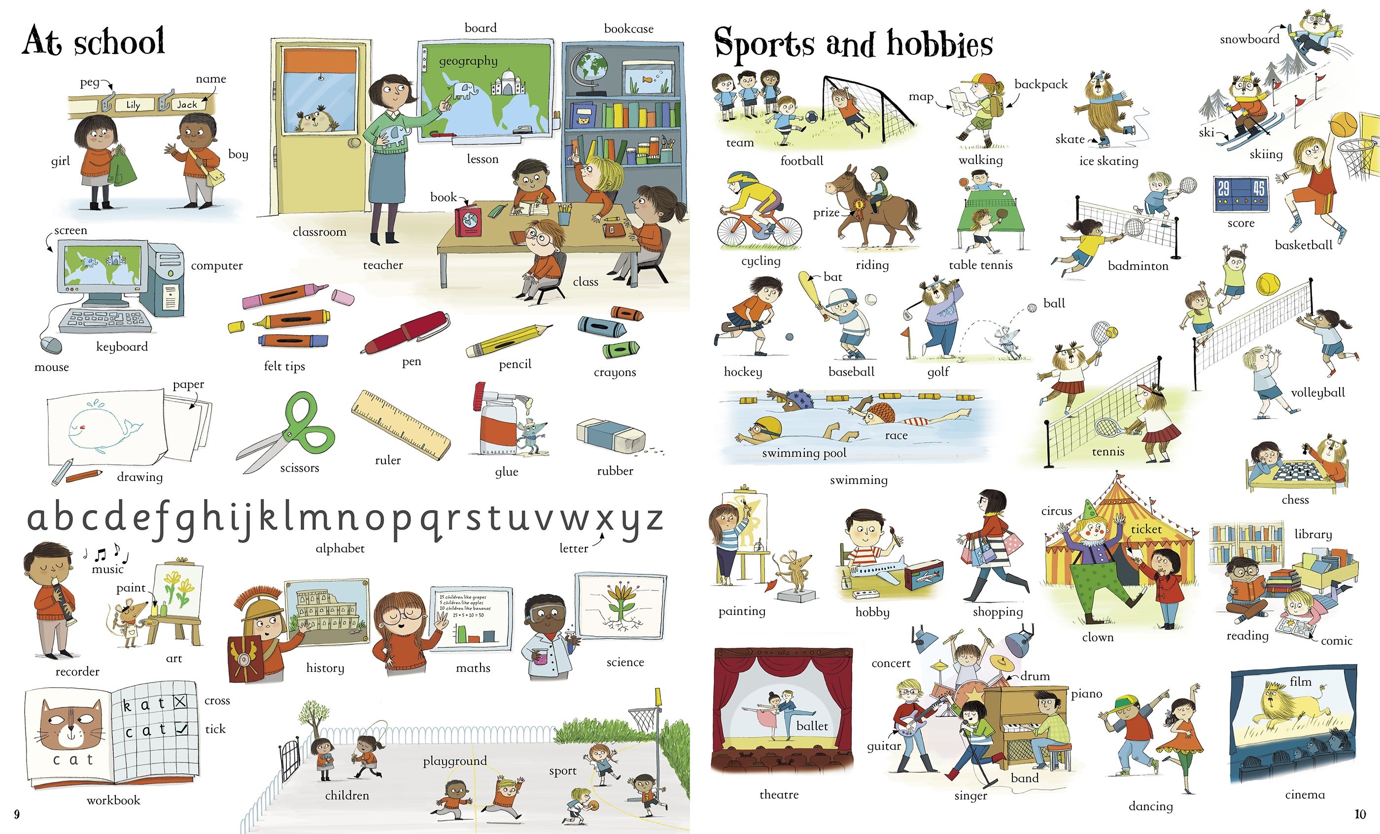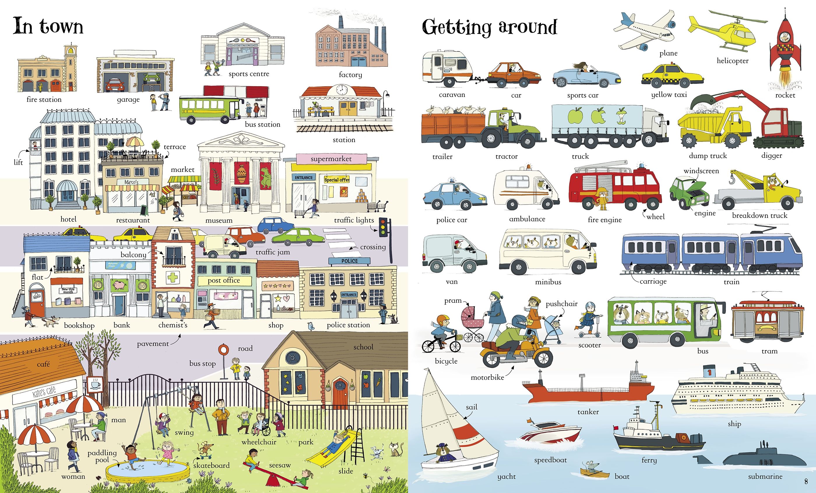 A colourful picture word book with illustrations of around a thousand everyday words. Words are arranged by theme, providing lots to spot and talk about together. A fun way to build a child’s vocabulary, with delightful pictures to pore over. Listen to all the words read by a British English speaker at the Usborne Quicklinks website.