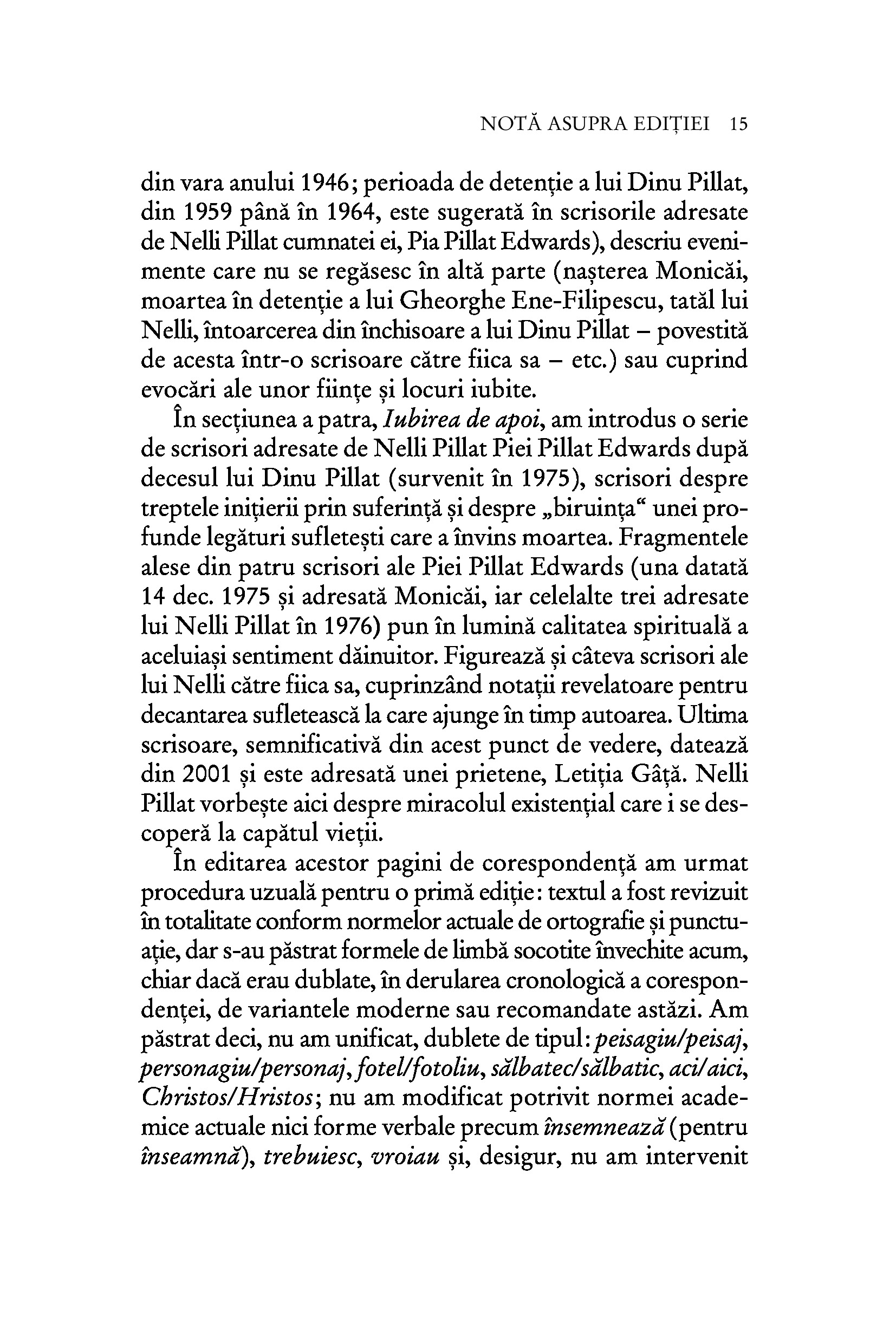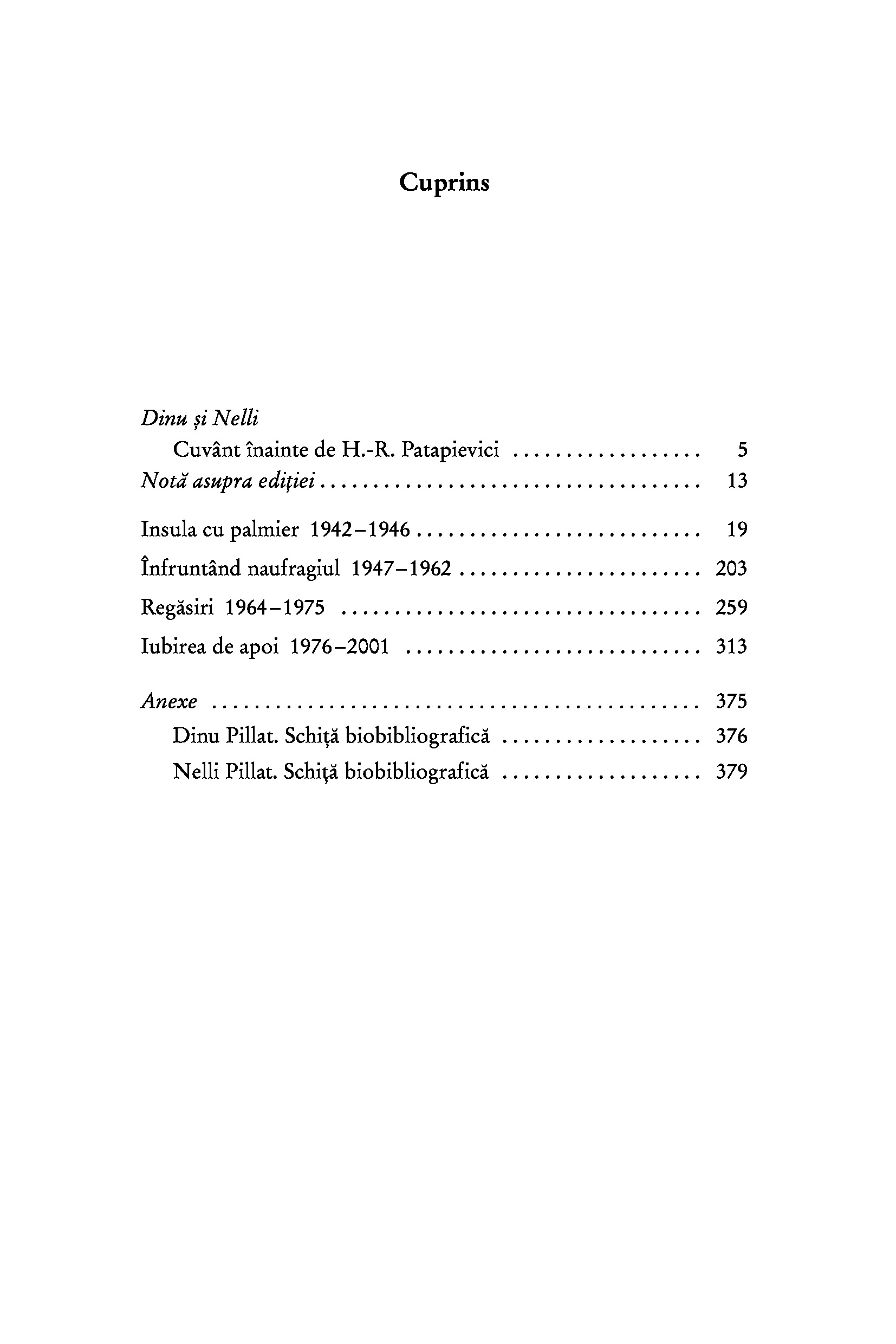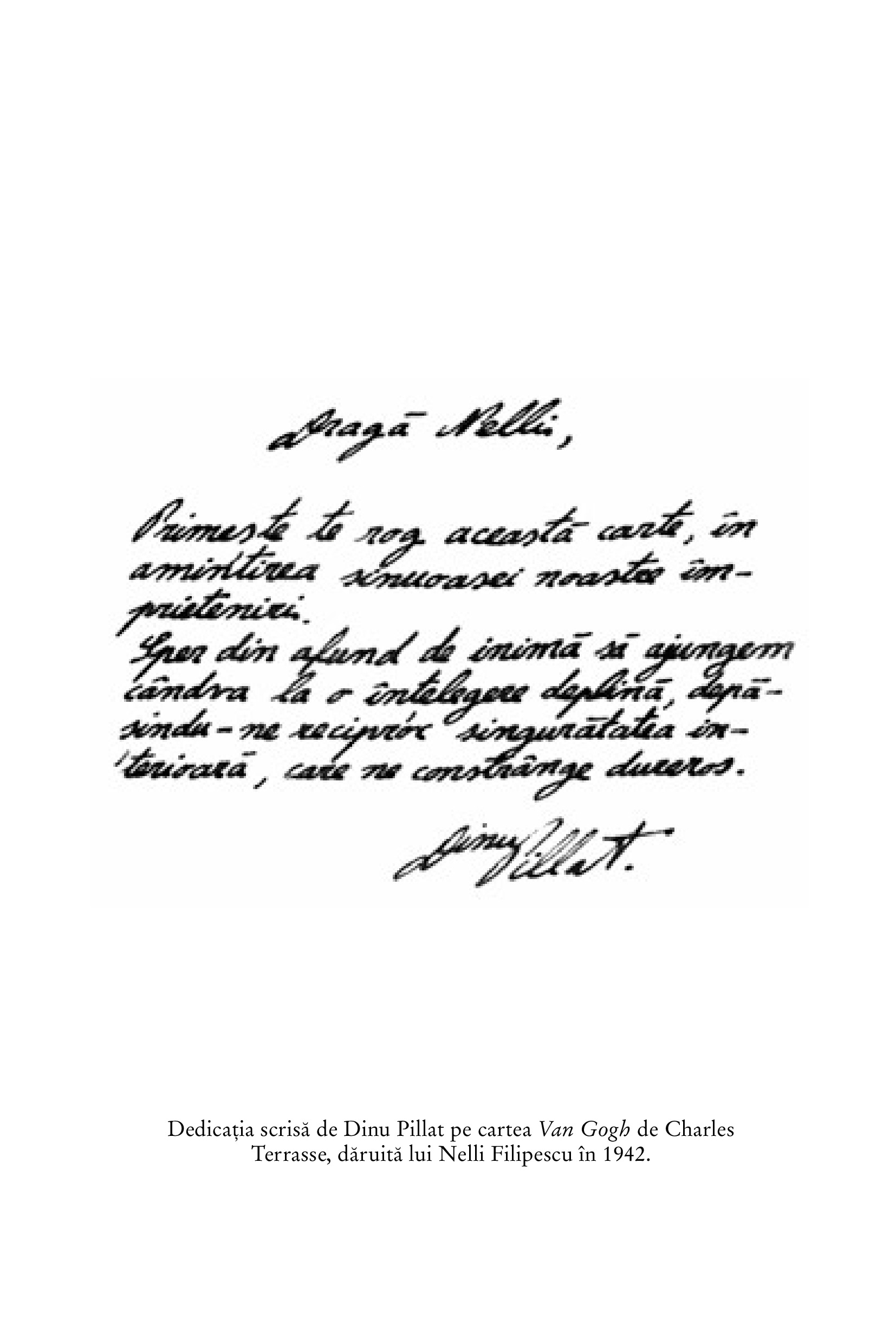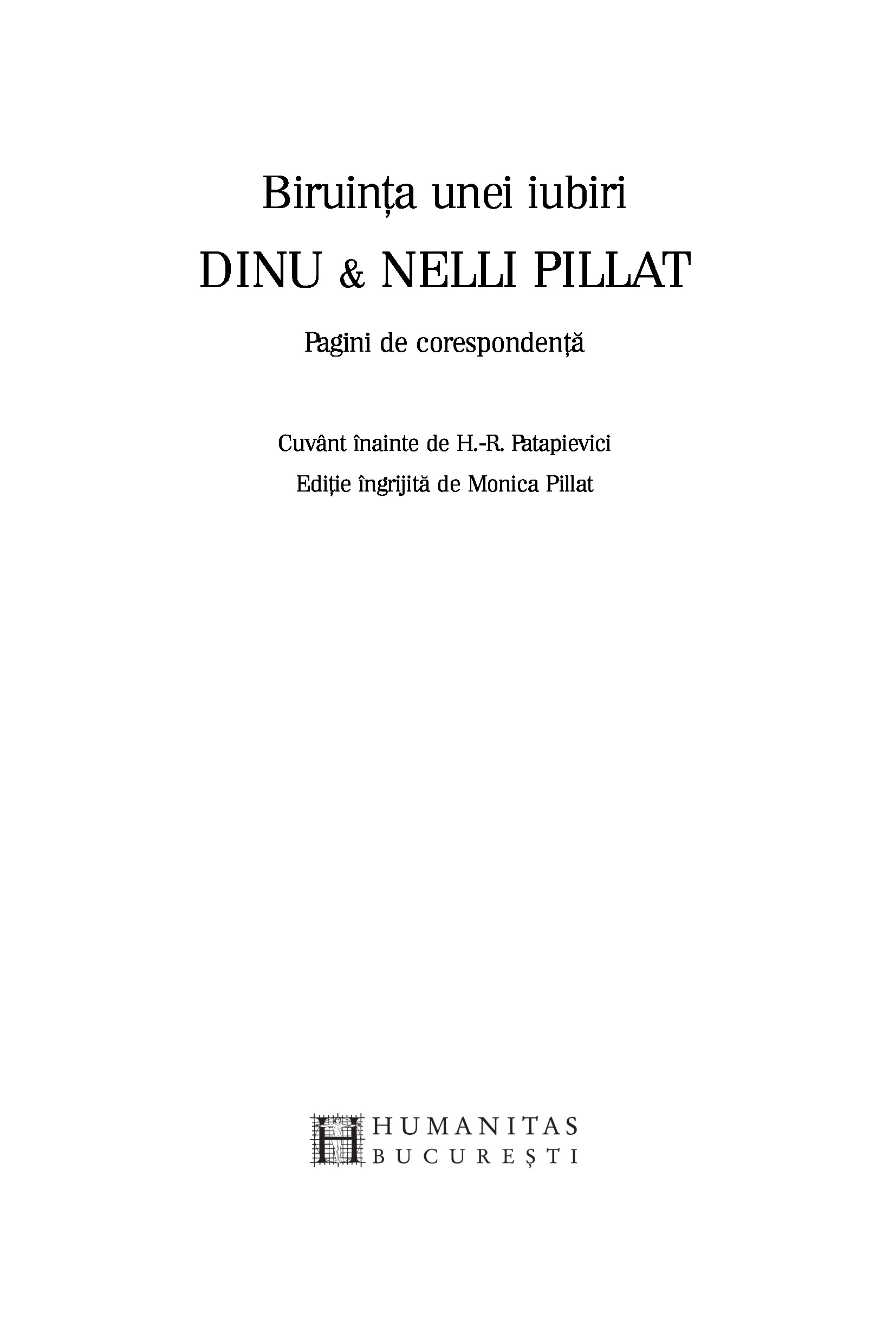 Pe copertă: fotografia de nuntă a lui Dinu şi Nelli Pillat, 6 decembrie 1944; pana de păun – simbol al nemuririi – a fost fotografiată de Cătălin Cioabă.