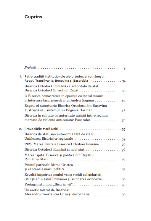 „Ierarhii Bisericii Ortodoxe Române au fost copii ai timpului lor la fel de mult ca politicienii sau intelectualii de frunte. Dar despre BOR se știu foarte puține lucruri. Fără deschiderea completă a arhivelor bisericești pentru toți istoricii și fără reliberalizarea arhivelor de stat, trecutul BOR va continua să fie o problemă spinoasă în istoria României. Ca și armata, serviciile secrete sau academia, Biserica se ferește de orice dezbatere în privința propriului trecut, și mai cu seamă în privința acelui trecut care o face contemporană cu patru regimuri politice dictatoriale: carlist, legionar, antonescian, comunist.