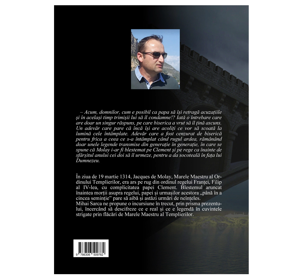 Mihai Sarca ne propune o incursiune în trecut, prin prisma prezentului, încercând să descifreze ce e real și ce e legendă în cuvintele strigate prin flăcări de Marele Maestru al Templierilor.
