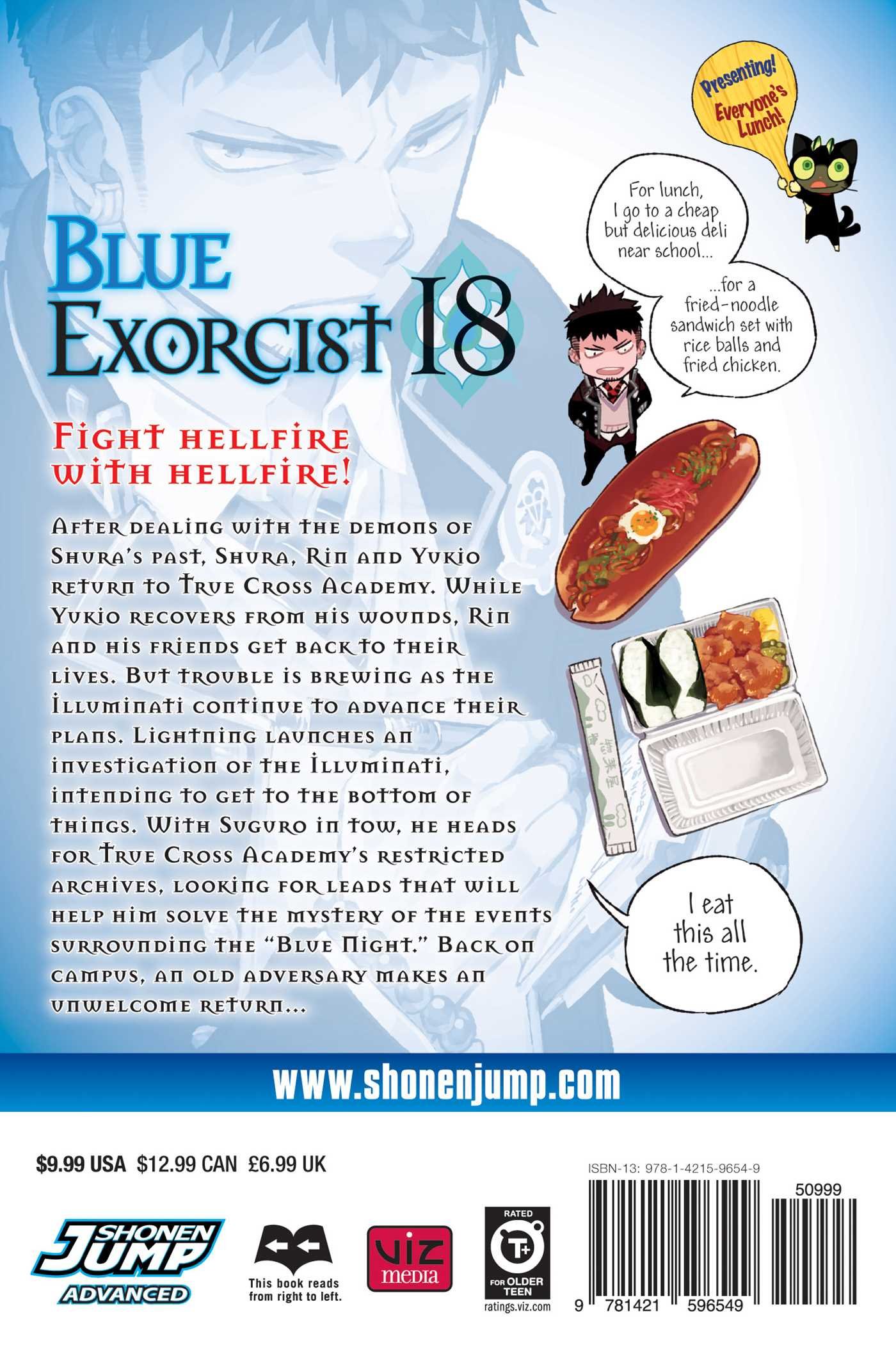 After dealing with the demons of Shura’s past, Shura, Rin and Yukio return to True Cross Academy. While Yukio recovers from his wounds, Rin and his friends get back to their lives. But trouble is brewing as the Illuminati continue to advance their plans. Lightning launches an investigation of the Illuminati, intending to get to the bottom of things. With Suguro in tow, he delves into the archives deep below True Cross Academy, where he may uncover secrets that were buried there for a reason…