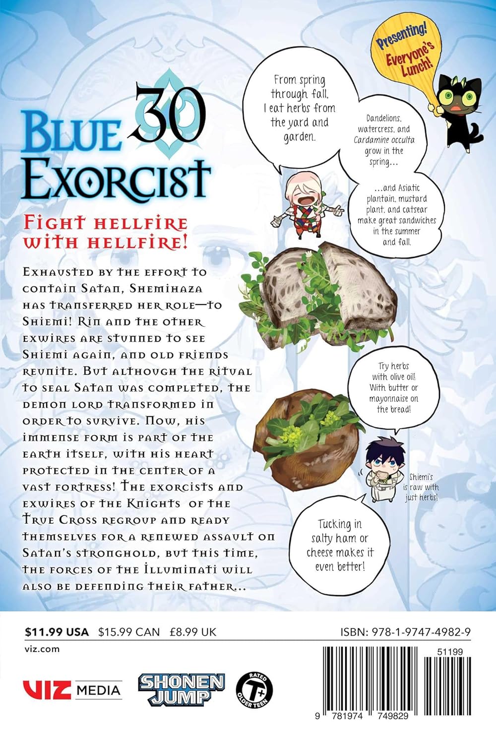Exhausted by the effort to contain Satan, Shemihaza has transferred her role-to Shiemi! Rin and the other Exwires are stunned to see Shiemi again, and old friends reunite. But although the ritual to seal Satan was completed, the demon lord transformed in order to survive. Now, his immense form is part of the earth itself, with his heart protected in the center of a vast fortress! The Exorcists and Exwires of the Knights of the True Cross regroup and ready themselves for a renewed assault on Satan's stronghold, but this time, the forces of the Illuminati will also be defending their father…