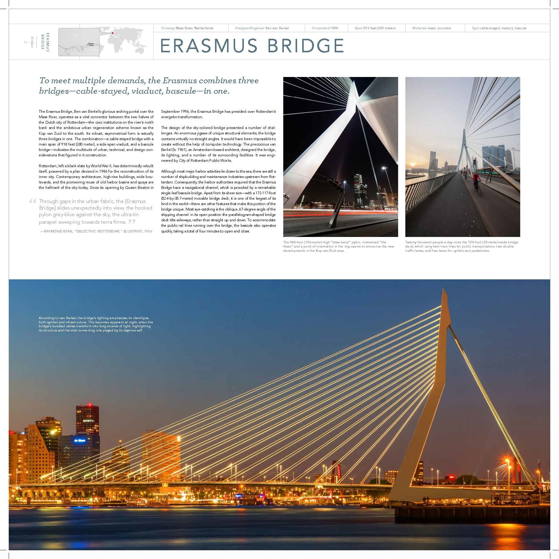 Technological advances, structural daring, and artistic vision have propelled the evolution of bridge design around the world. The last thirty years has seen the construction of masterpieces such as the Zakim Bridge that forever changed the city of Boston; Gateshead Millennium Bridge in England, a pedestrian tilt bridge that closes like an eye when it is raised; the Millau Viaduct in Tran Valley, France, which is the tallest cable-stay bridge in world; and the 102-mile Danyand-Kunshan Grand Bridge in China, the longest in the world. This revised edition features new profiles on these amazing spans, as well as beloved landmarks, such as the Golden Gate and the Brooklyn Bridge.