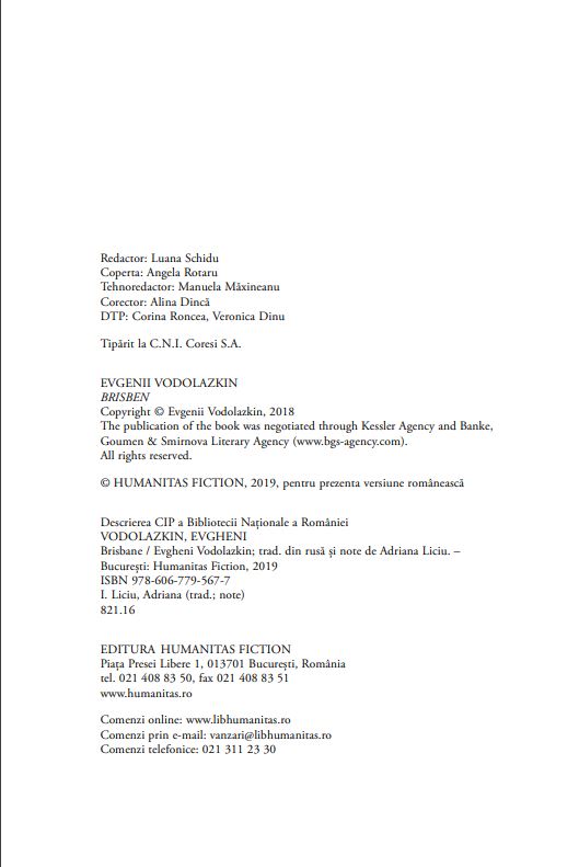În noul lui mare roman, Evgheni Vodolazkin rămâne fidel universului său literar, continuându-și într-un mod sclipitor meditația asupra timpului, memoriei și iubirii, și își păstrează capacitatea de a-și surprinde mereu cititorul în alt fel, de aceea am putea afirma că Laur, Aviatorul și Brisbane alcătuiesc o trilogie.