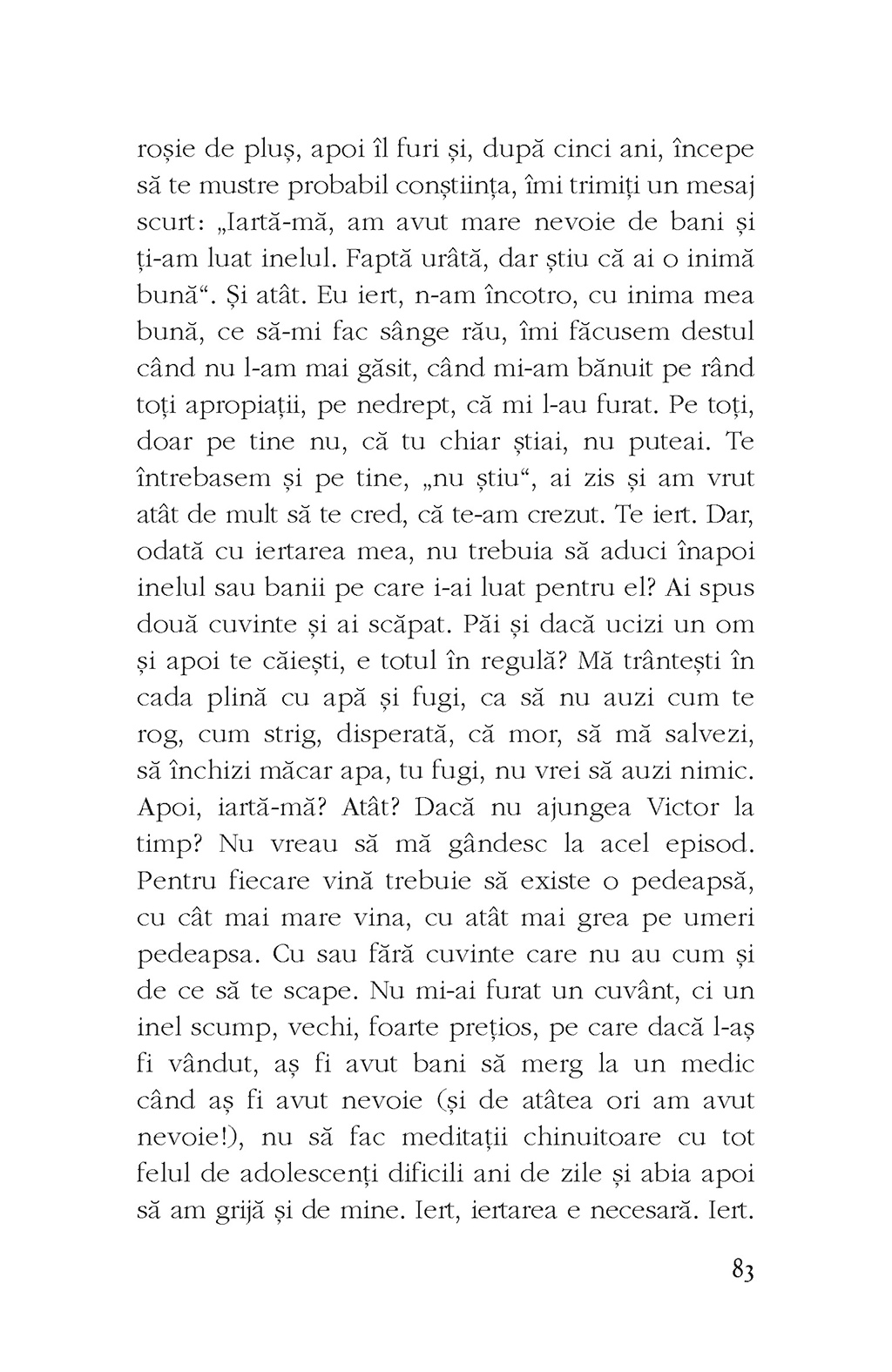 La rugămintea unei jurnaliste, Vasilica Buburuz își rememorează viața în fața unui reportofon. E ultima confesiune a unei femei care din copilărie este imobilizată într-un scaun cu rotile, handicap ce nu o împiedică să trăiască asemenea oamenilor valizi, țintuiți, la rîndul lor, în fața computerelor și dominați de prejudecăți de tot felul. Își dorește să danseze, să-i crească aripi și să-și ia zborul, să se elibereze de boli și suferințe măcar în vis. Cu o origine modestă, considerată de părinți un eșec al vieții lor și de aceea lipsită de afecțiune, fata infirmă studiază, termină două facultăți, se poate întreține singură. Grațioasă și fragilă, dar cu resorturi inimaginabile, trăiește și povești de dragoste, și multe deziluzii, depășite în numele iubirii. Mărturia ei de o crudă sinceritate creionează portretul unei ființe greu încercate – o luptătoare optimistă și perseverentă, care se dedică alinării suferințelor celor din jur și, cu o vitalitate extraordinară, reușește să se bucure de fiecare nouă zi.