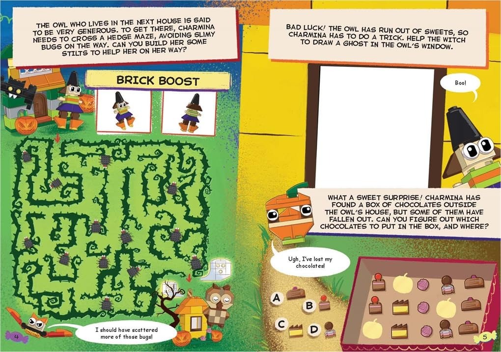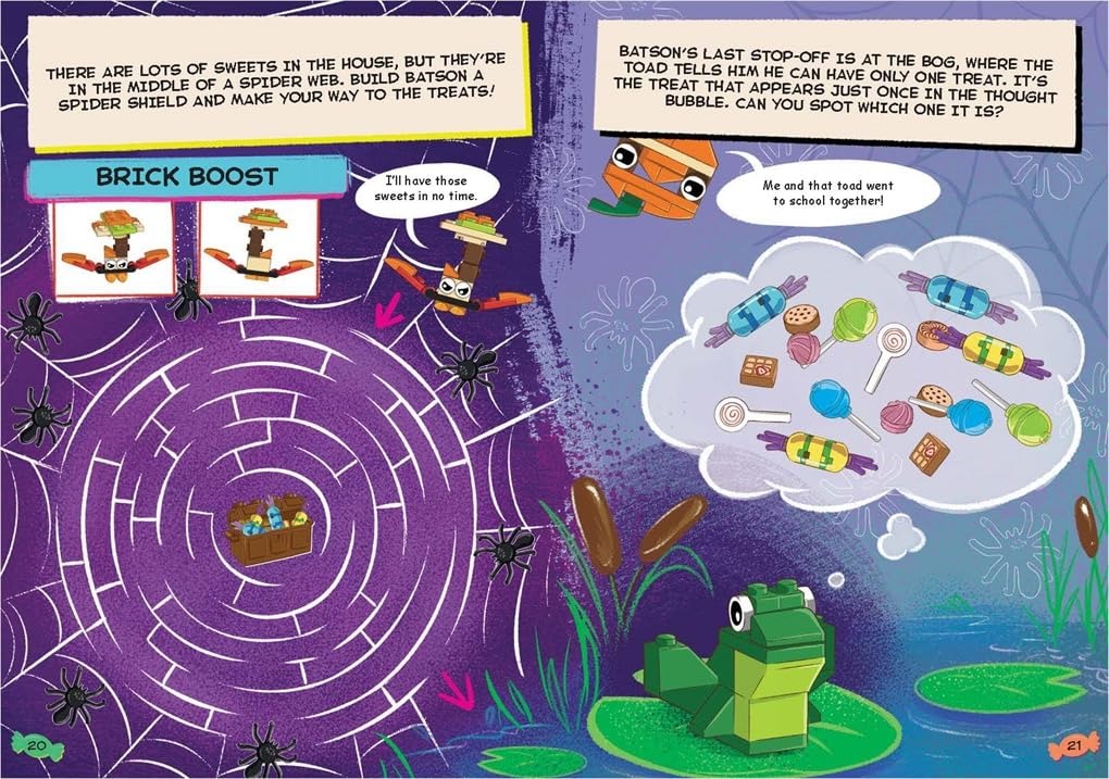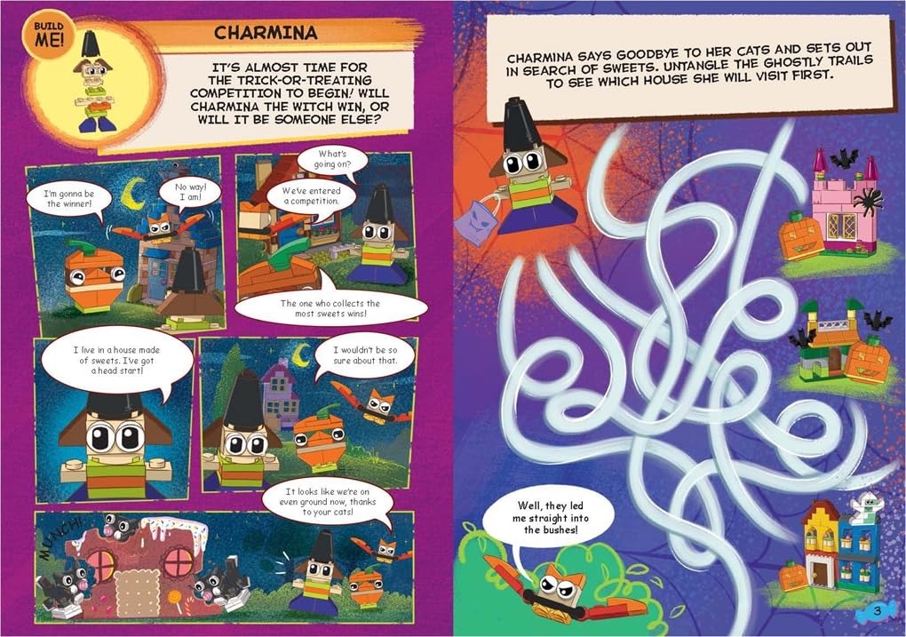 As you go through the book, read the comics, complete the puzzles and build extra bits to help each character out on their adventures.