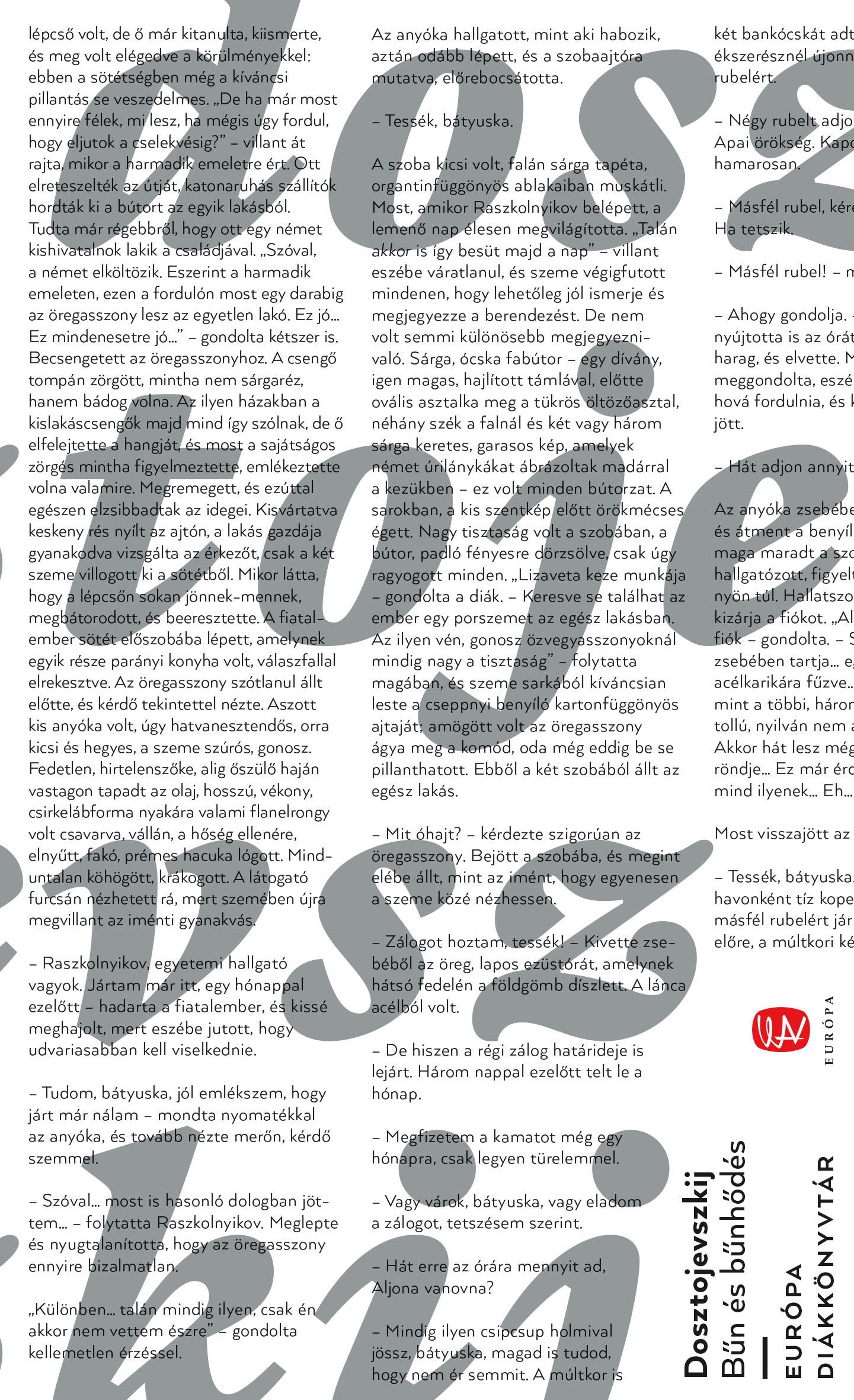 Az író első nagy regényének a hőse Raszkolnyikov, nyomorgó pétervári diák úgy érzi, hogy rá nem érvényesek a köznapi erkölcsi törvények, joga van még a gyilkossághoz is. Hideg fővel gondolja végig, hogyan teszi el láb alól Ivanovnát, a kártékony uzsorásasszonyt. Raszkolnyikov úgy véli, hogy a "nem közönséges" (napóleoni típusú) ember joggal követ el bűnt, ha eszméjét másképpen megvalósítani nem tudja.
