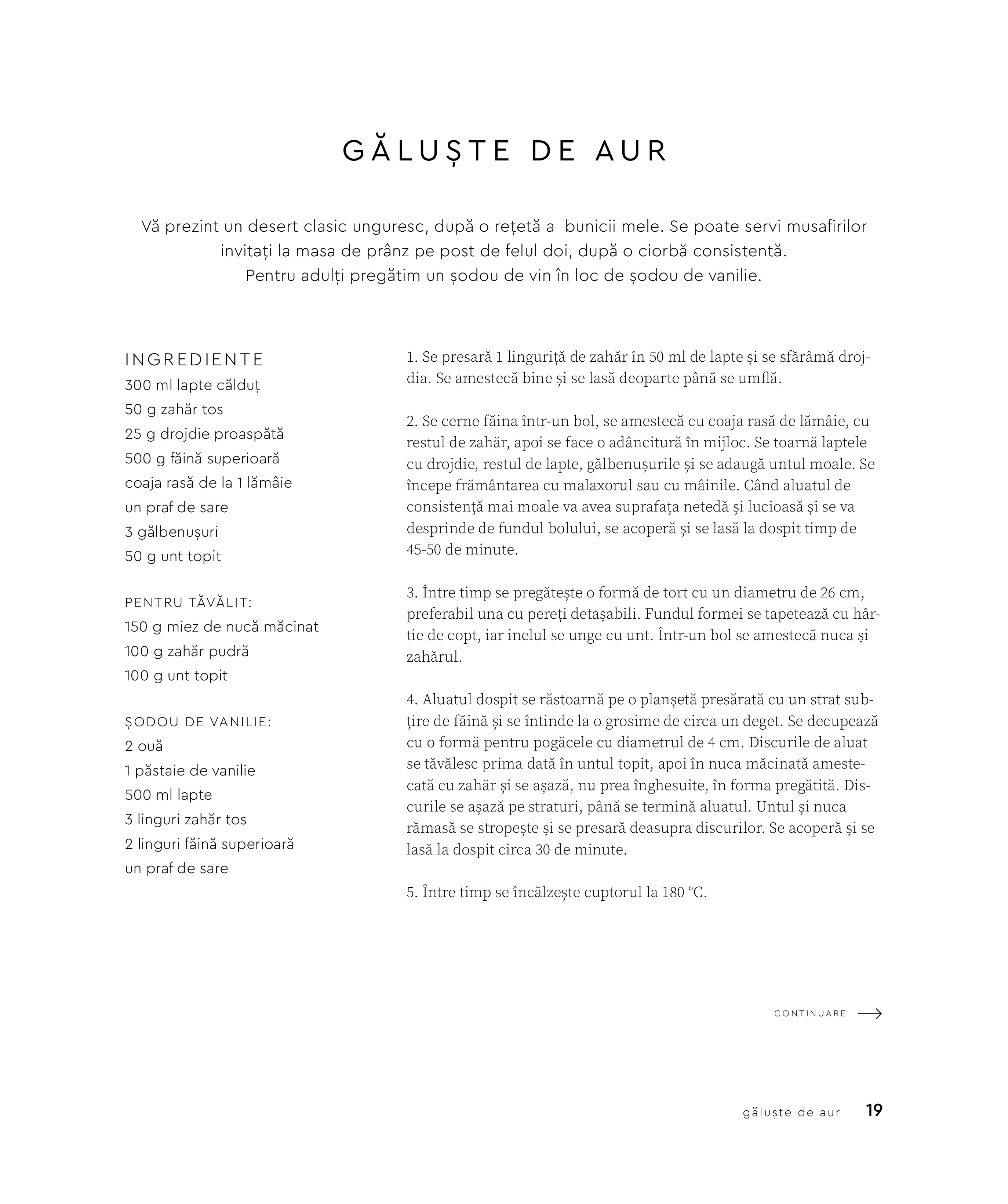 După cele trei cărți de succes prin intermediul cărora i-a condus pe cititori în lumea aluatului dospit și a coacerii pâinii, de data aceasta autoarea le propune 63 de rețete de bunătăți pentru oaspeți – de la găluște de aur la jerbo.